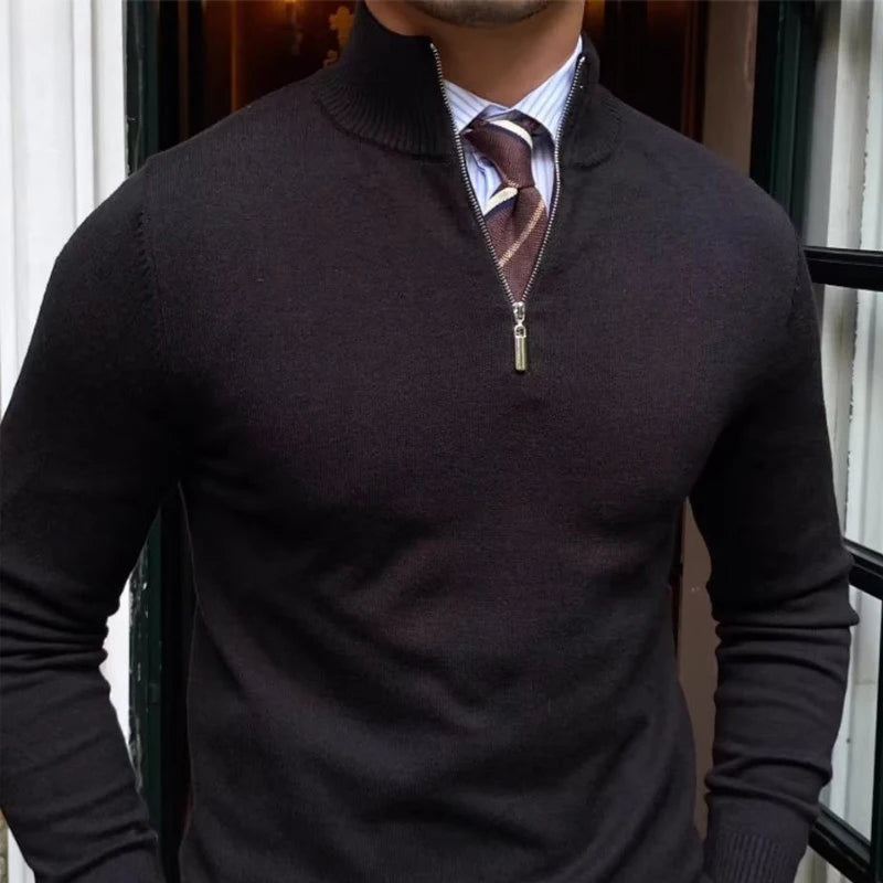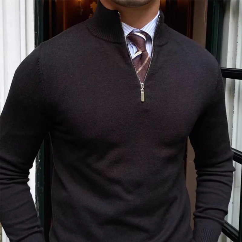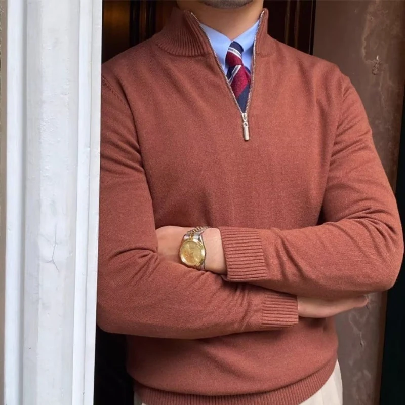Autumn Winter New Half Zipper Sweater Men Long Sleeved Solid Color Pullover Bottom Knitted Shirt Business Casual Versatile Coat