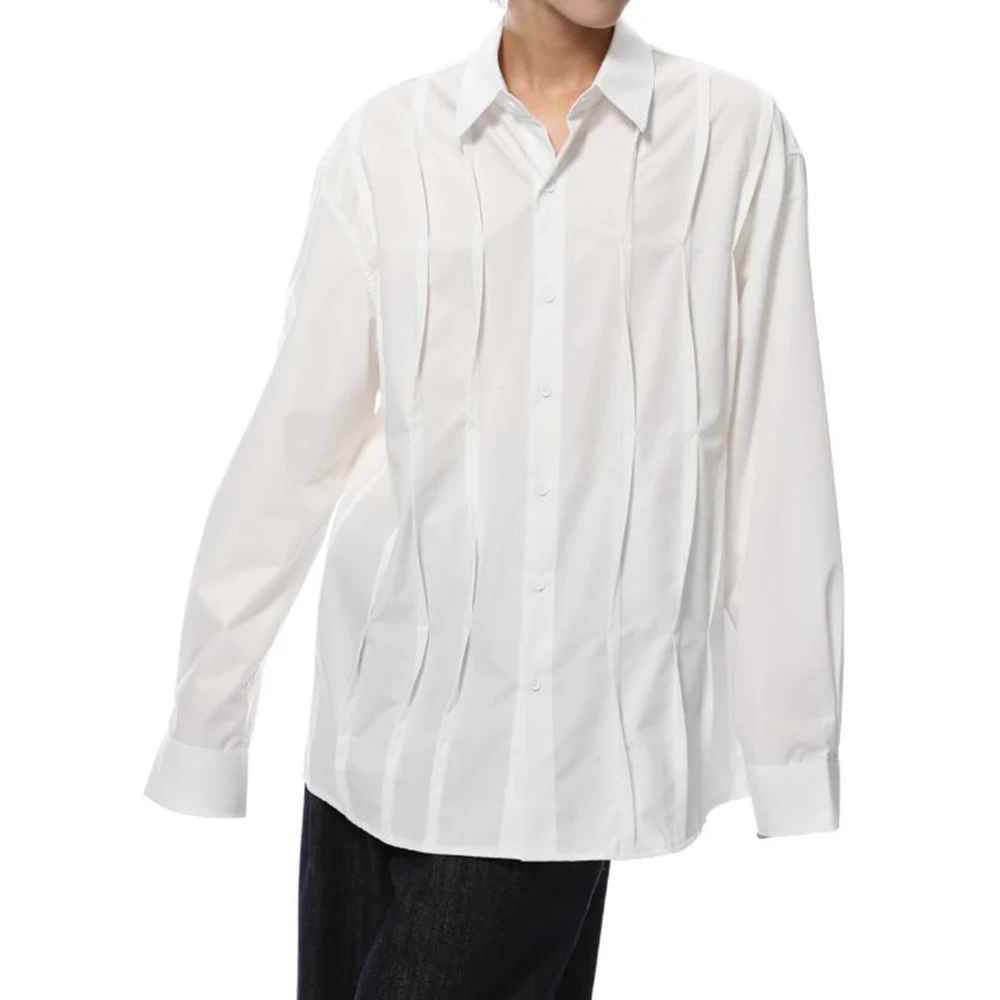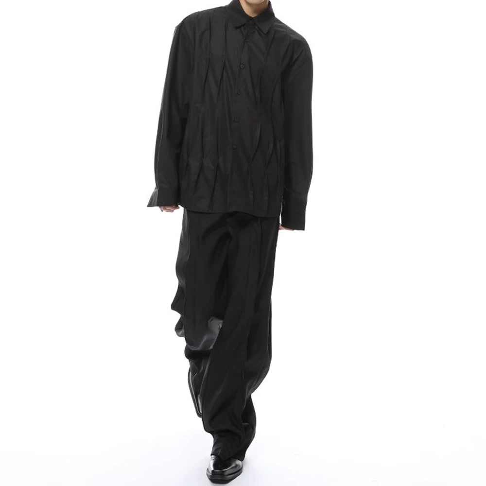 Dark Style Niche Design Shirt Pleated High-End Shirt Autumn New Japanese Harajuku Style Solid Color Casual Y2k Tops For Men
