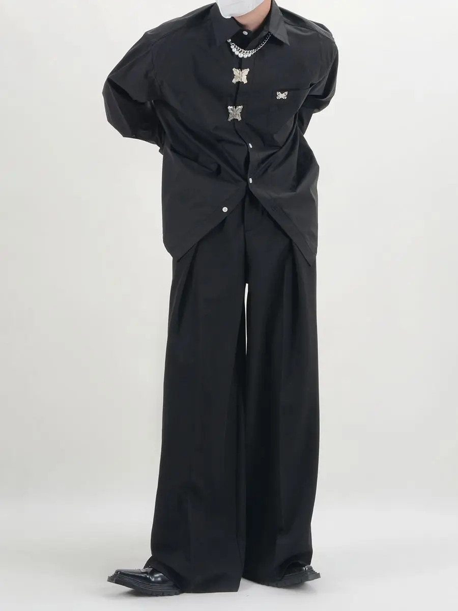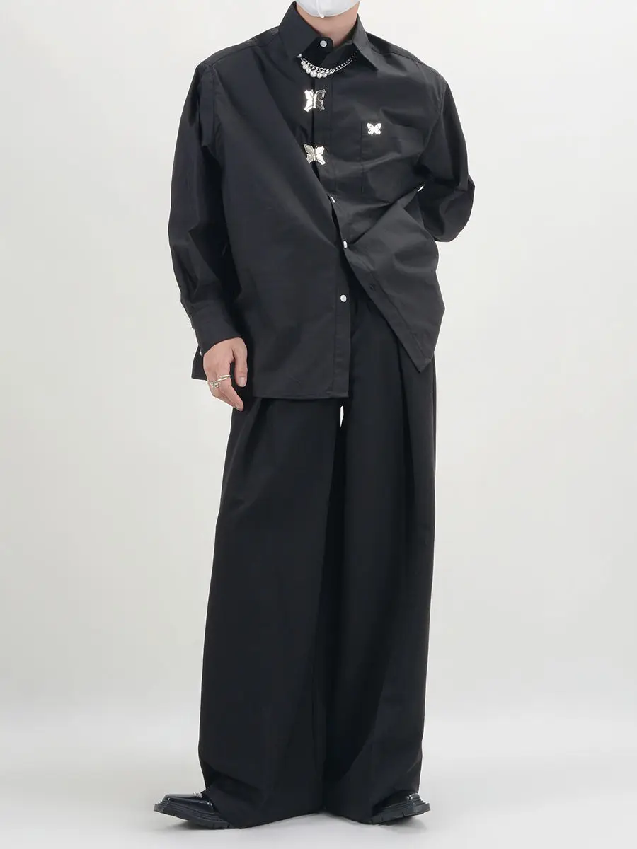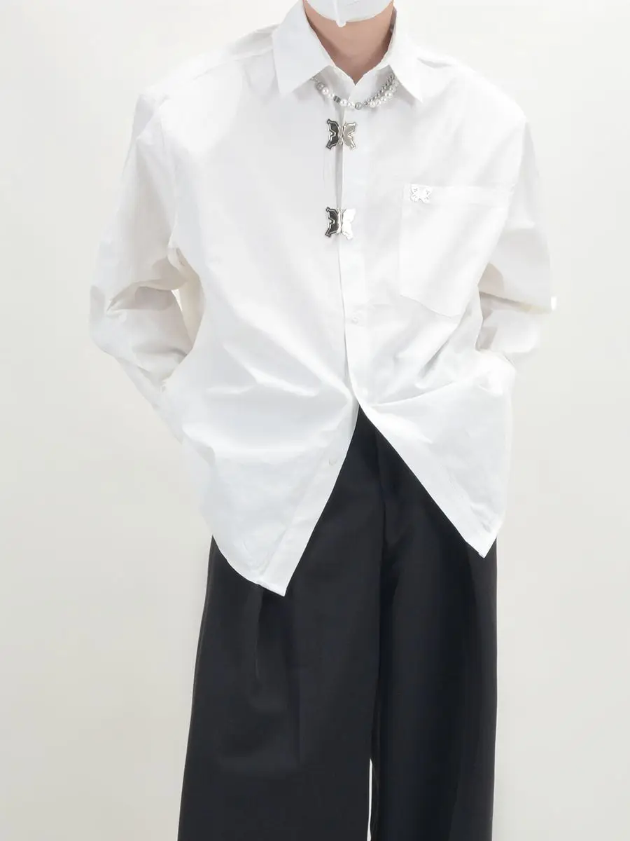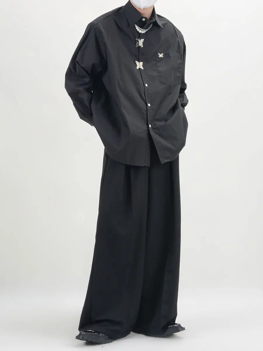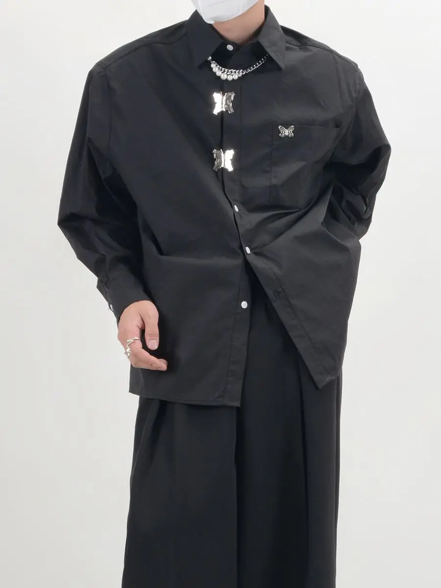 Design Sense Long Sleeve Lapel Shirt for Men New Metal Butterfly Lock Loose Casual Shirt Korean Fashion Blouses
