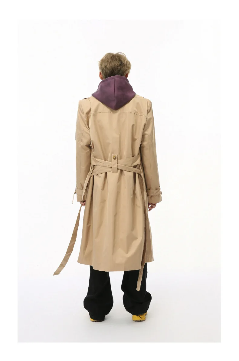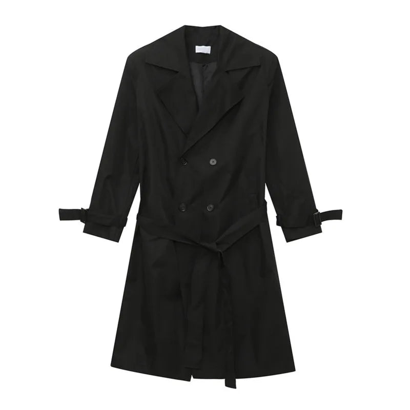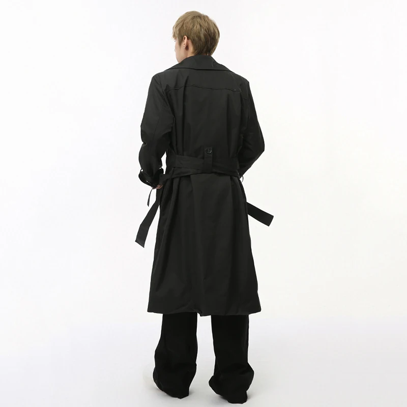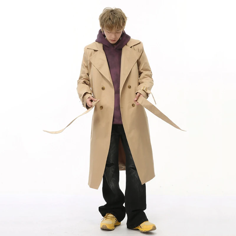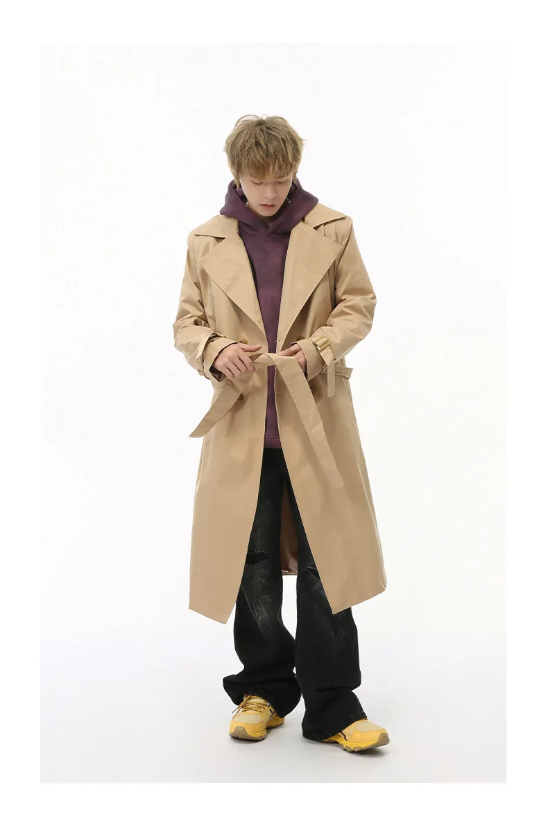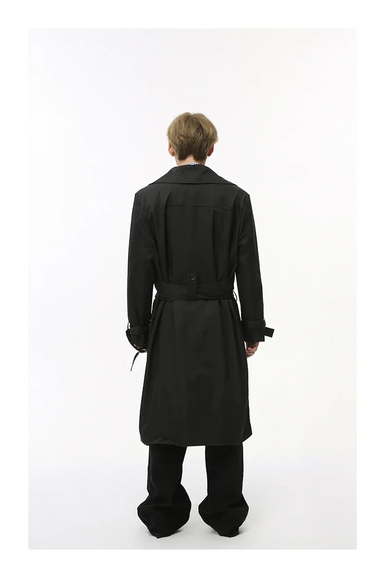 Double Breasted Men's Trench Belt Solid Color Long Menwear Korean Style Overknee Male Windbreakers New Simple
