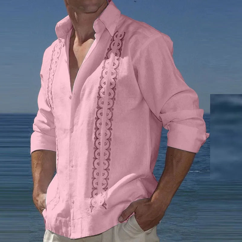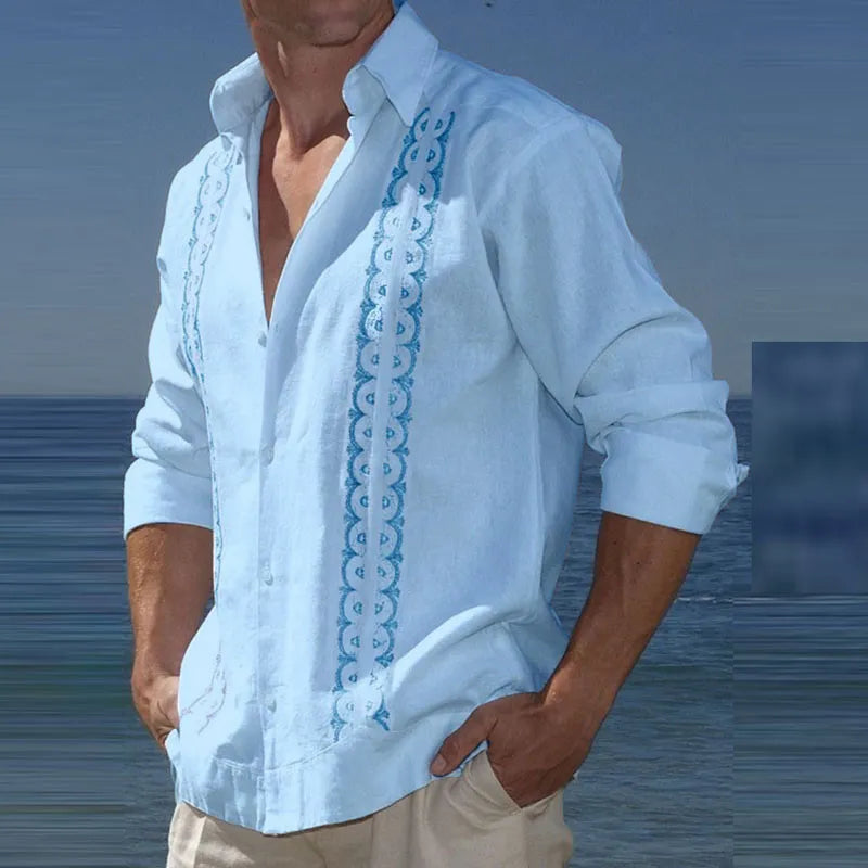 Fashion Button Turn-down Collar Office Blouse Men Holiday Beach Printed Top New Spring Summer Men Casual Cotton Linen Shirt