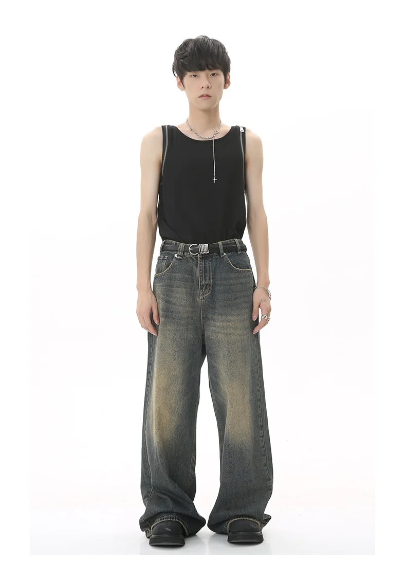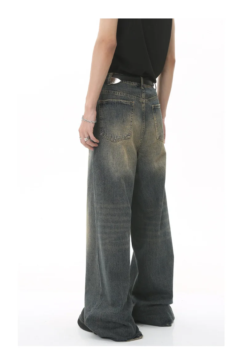 Four Season Men's Denim Pants Old Blue Washed Male Jeans Straight Casual Menwear Loose Wide Leg Trousers New Fashion