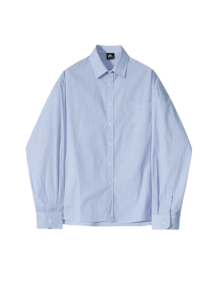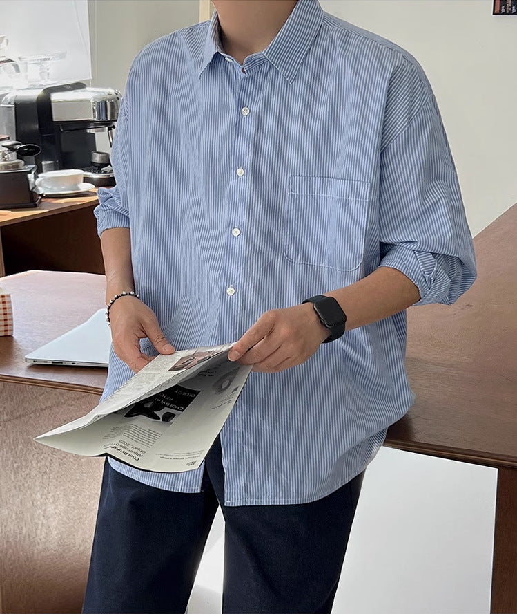Gotmes-shop 90s fashion men Korean Style Casual Shirt Light Mature Loose Blue Loose Long Sleeve Shirt Thin Striped Spring and Autumn New Men's Korean Style