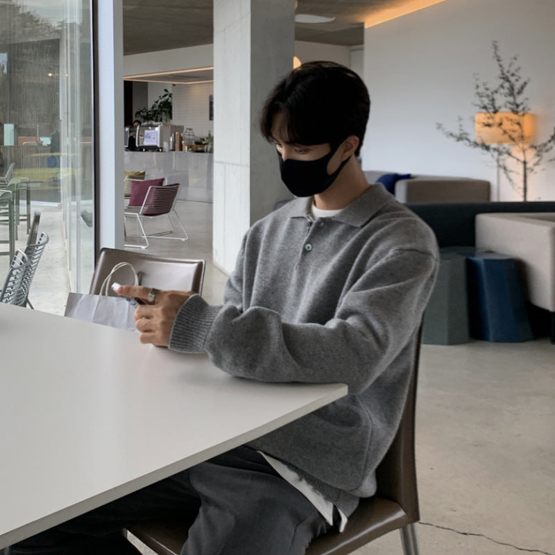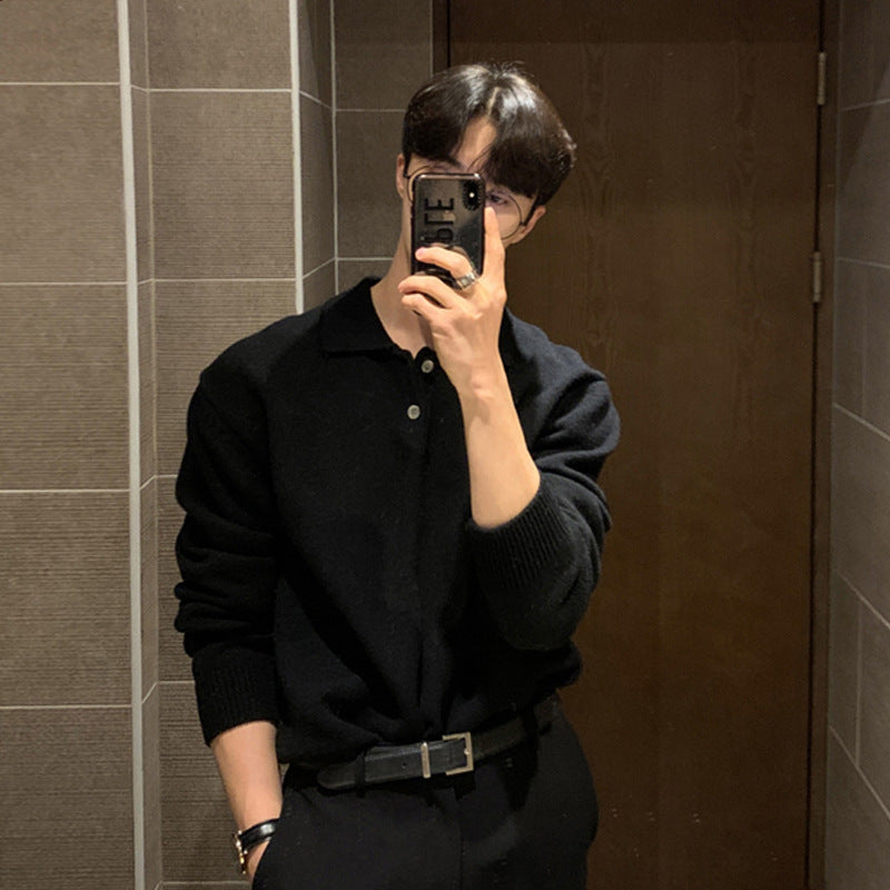 Gotmes-shop mens fall fashion Asclo Trendy New Dongdaemun Men's Lapel Sweater Men's Designer Polo Collar Skin-Friendly Loose Autumn