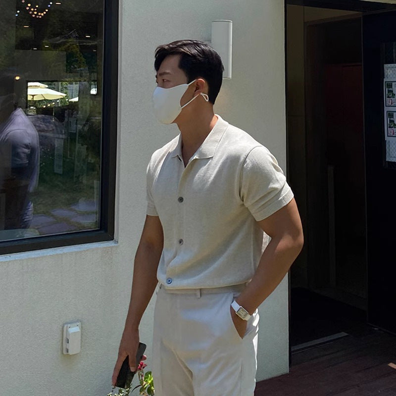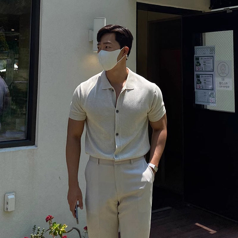 Gotmes-shop old money outfits men Ice Silk Knitted Short-Sleeved Men's Summer Ruffle Handsome Lapel T-shirt New Men's Summer Top Polo Shirt