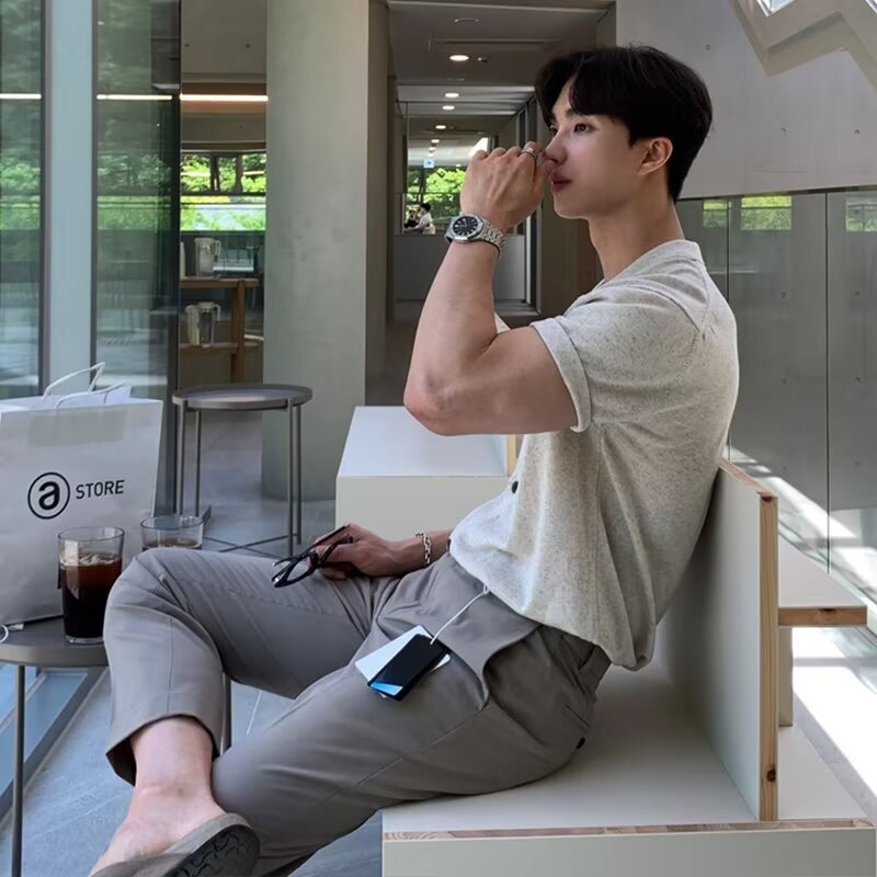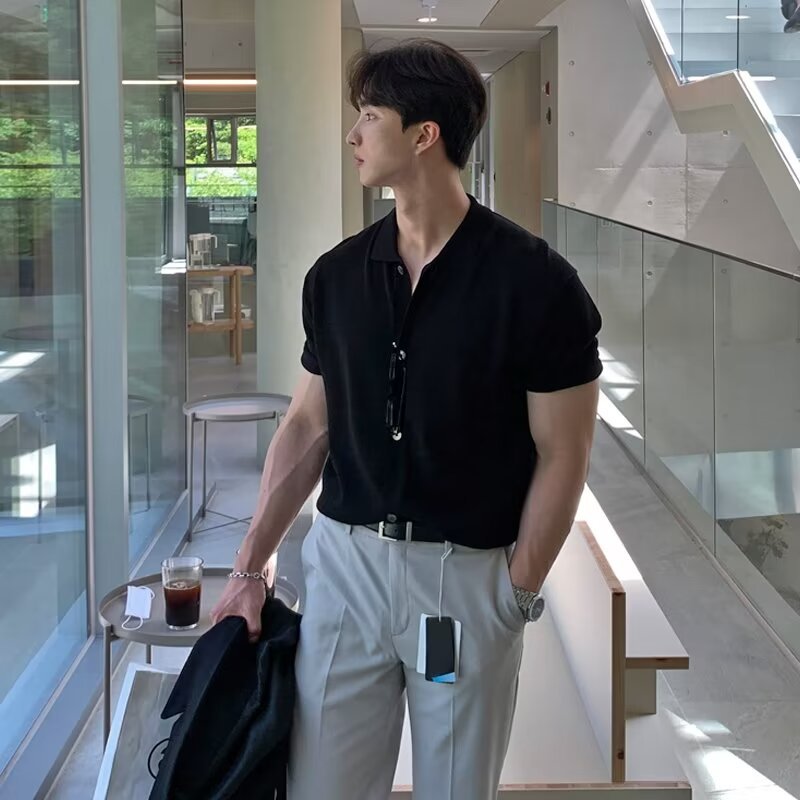 old money outfits men Short-Sleeved Men's Summer New Trendy Men's All-Match Polo Shirt Casual Lapel T-shirt Lazy Style Cardigan Knitted T-shirt Trendy