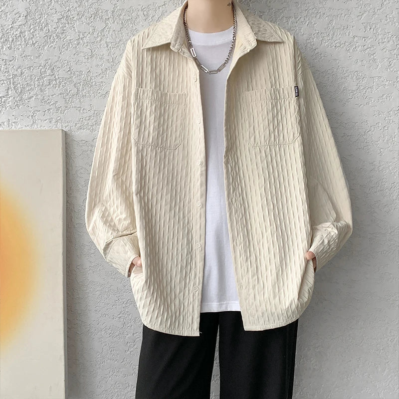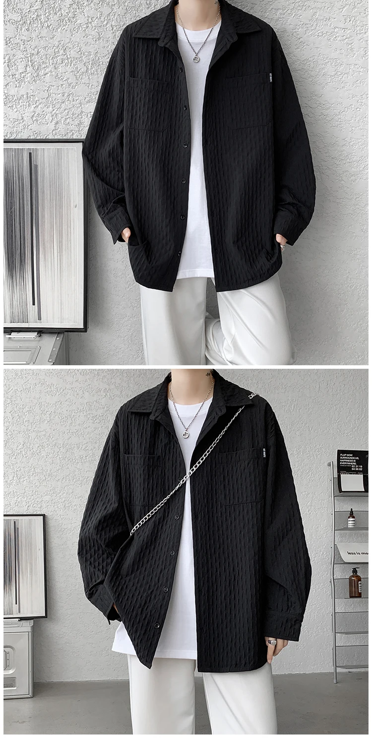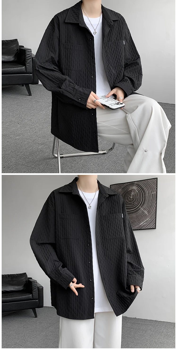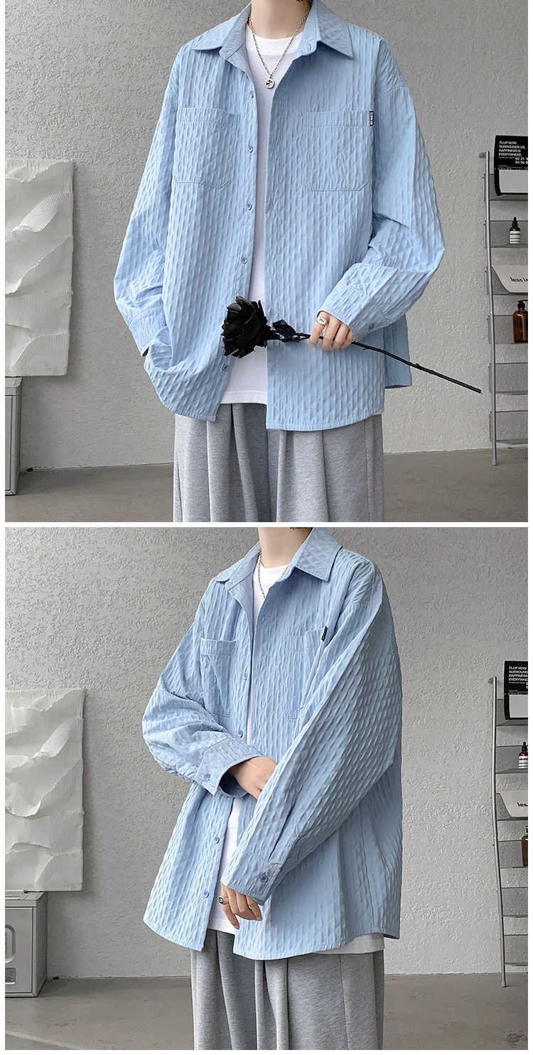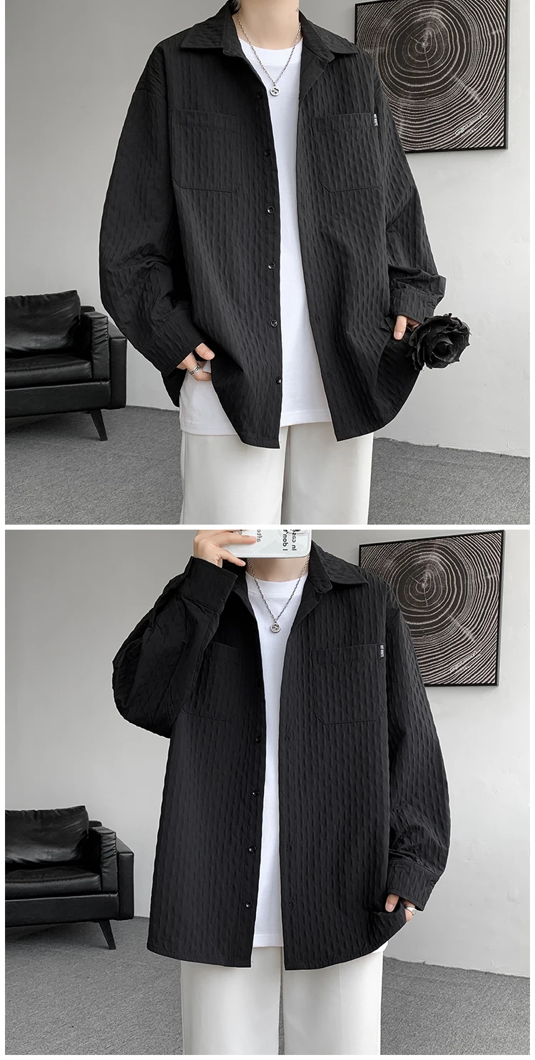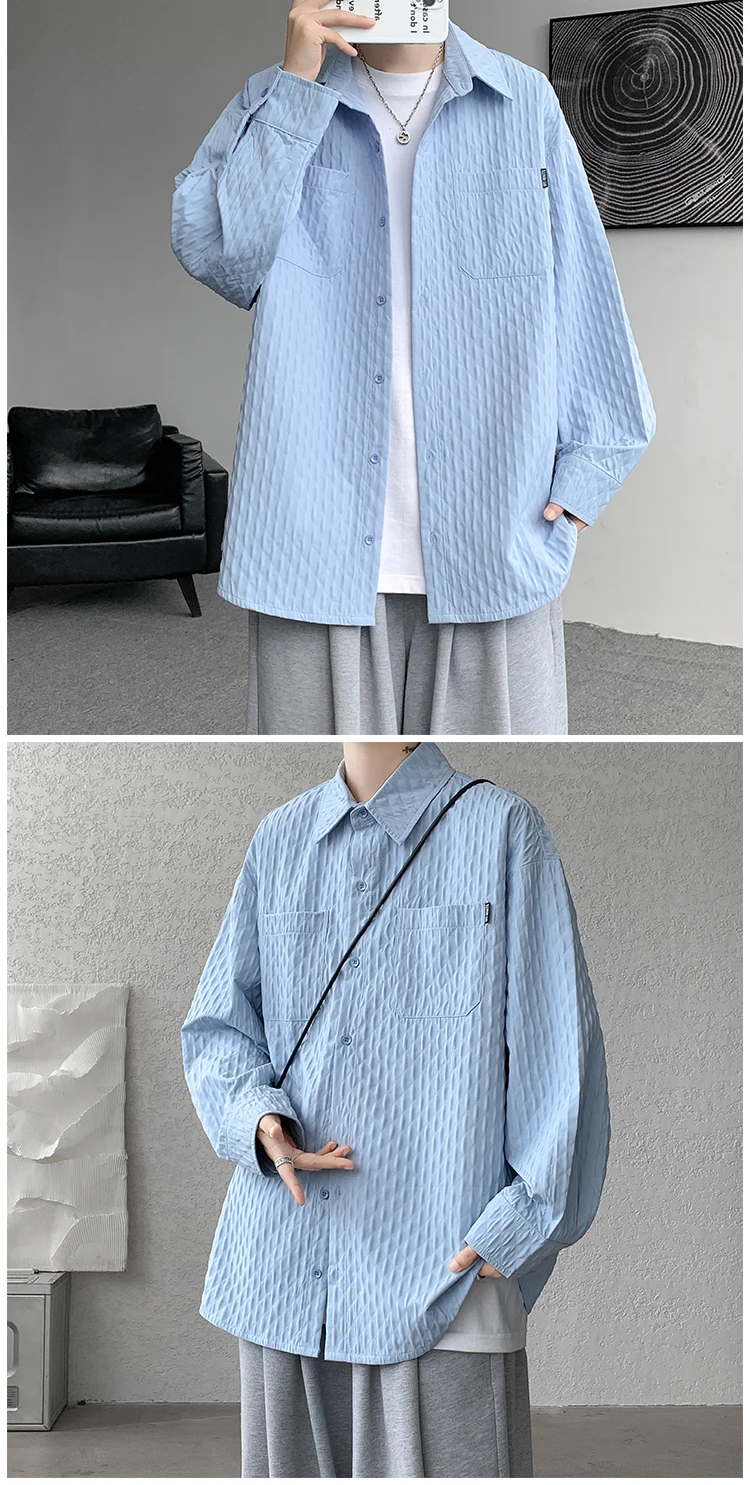High Quality Shirts Men Leisure Long Sleeve Chic New All-match Solid Summer Streetwear Loose Casual Simple College Daily