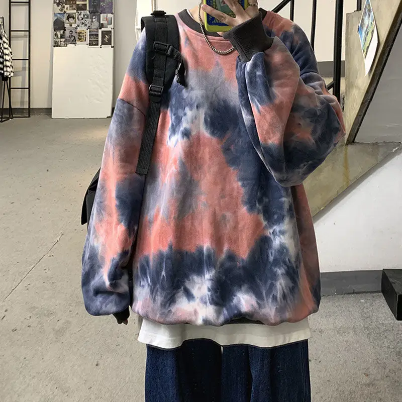 High Street Tie Dye Loose Hoodies Spring Autumn New Long Sleeve O-neck Korean Plus Size Pullovers Top Casual Fashion Men Clothes