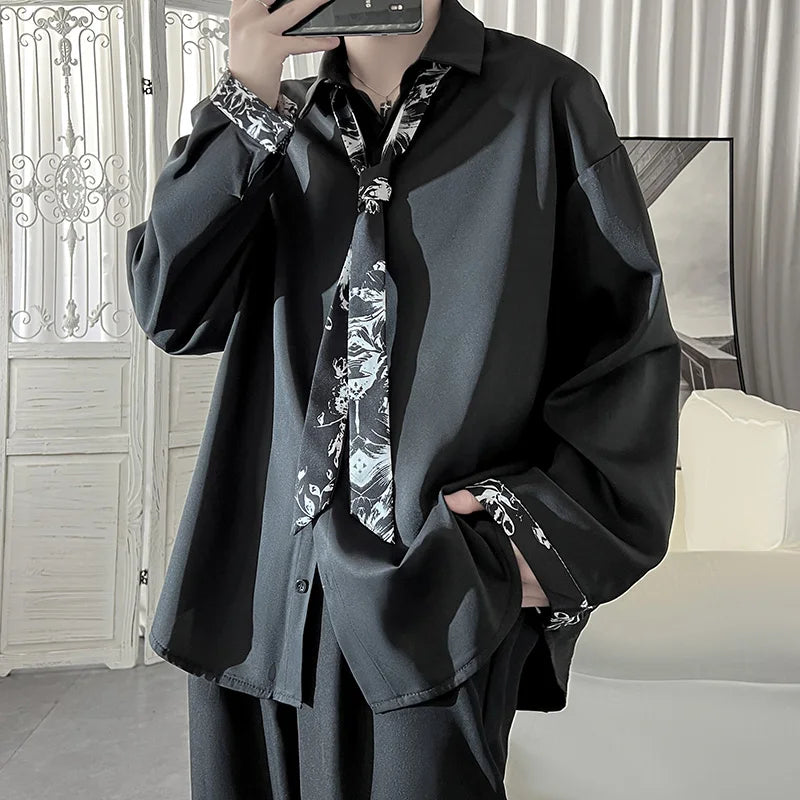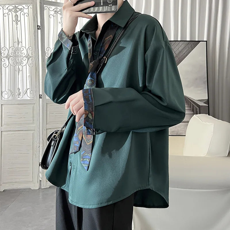 Korean Fashion Stylish Long Sleeve Blouses Men Streetwear All-match Handsome Teens Shirt 2023 Autumn New Retro Oversize Shirts