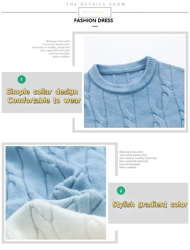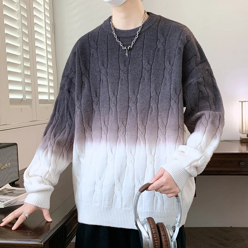 Korean Gradient Knitwear Loose Chunky Twist Knit Pullover 2024 New Round Neck Sweater Autumn Winter Warm Couple Tops