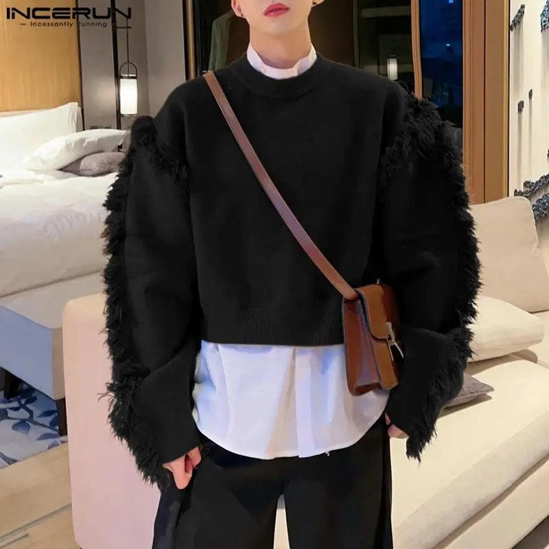 Korean Style New Men's Pullover Design Solid All-match Sweatshirts Tassels Trimmed Long Sleeved Sweaters S-5XL