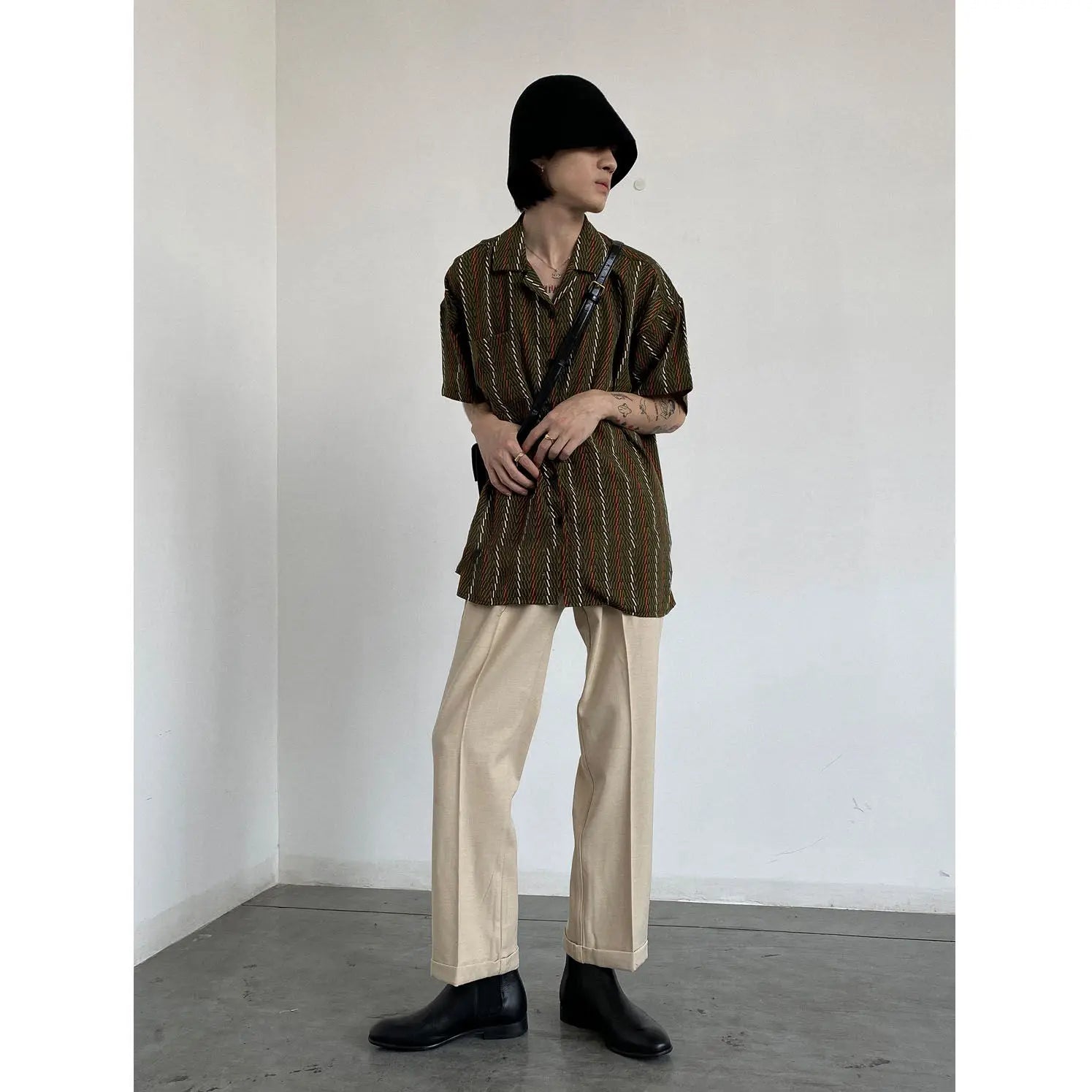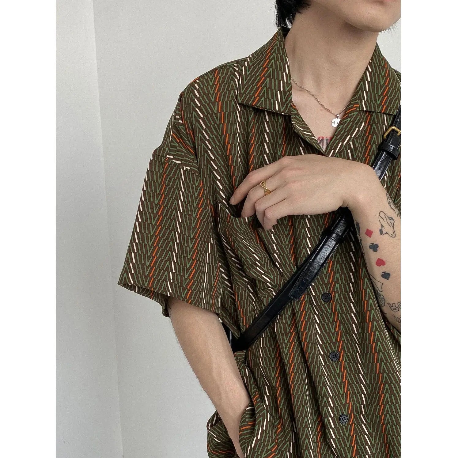 Korean style simple summer new style men Japanese retro pajamas collar loose casual versatile short-sleeved niche floral shirt