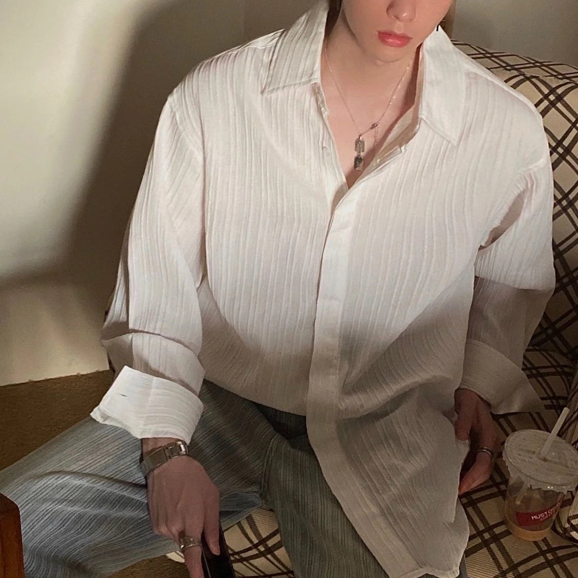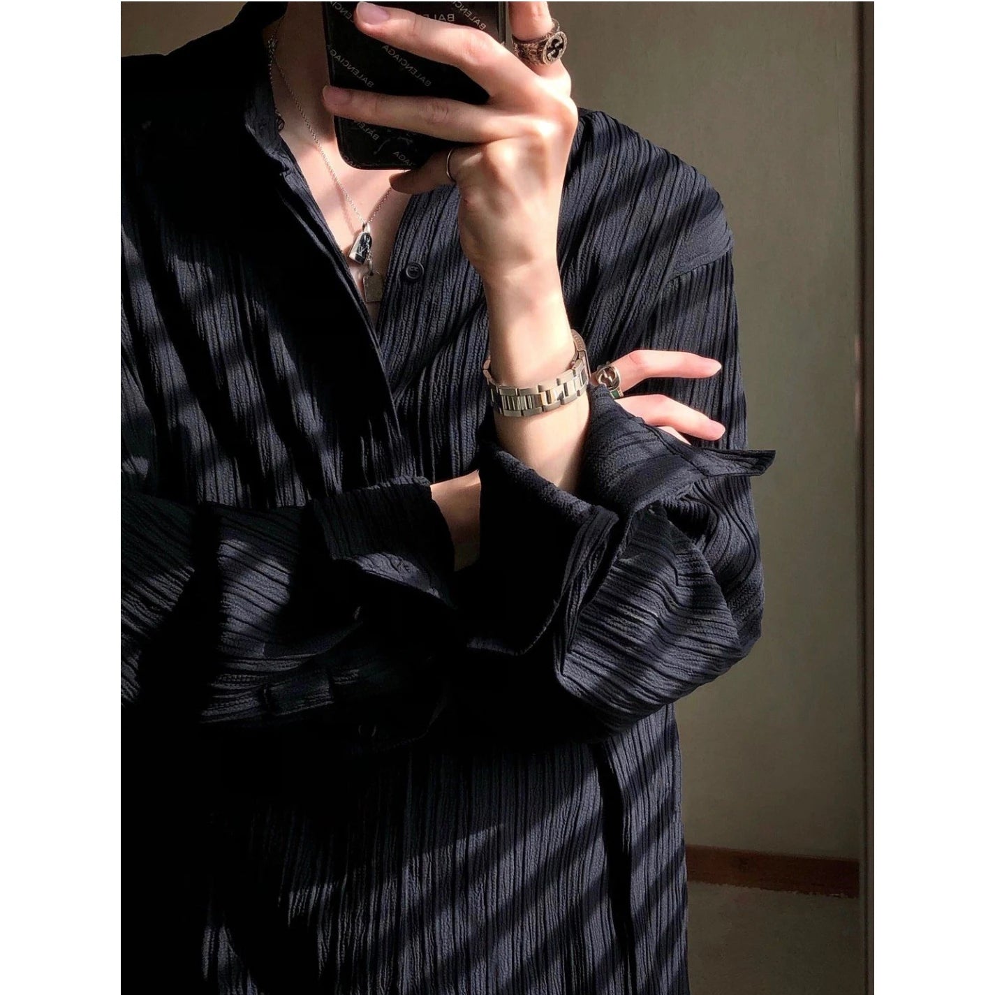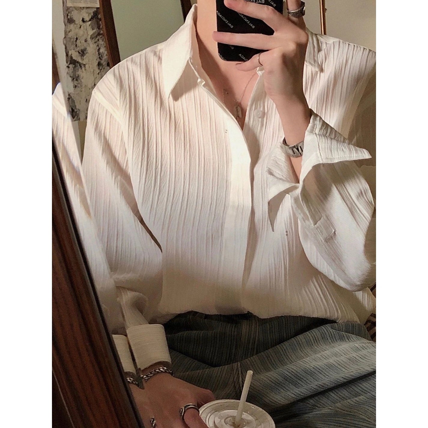 Korean Style Solid Color No-iron Men Shirts Long-sleeved Spring New High-end Concealed Button Trend Niche Texture Shirt Men