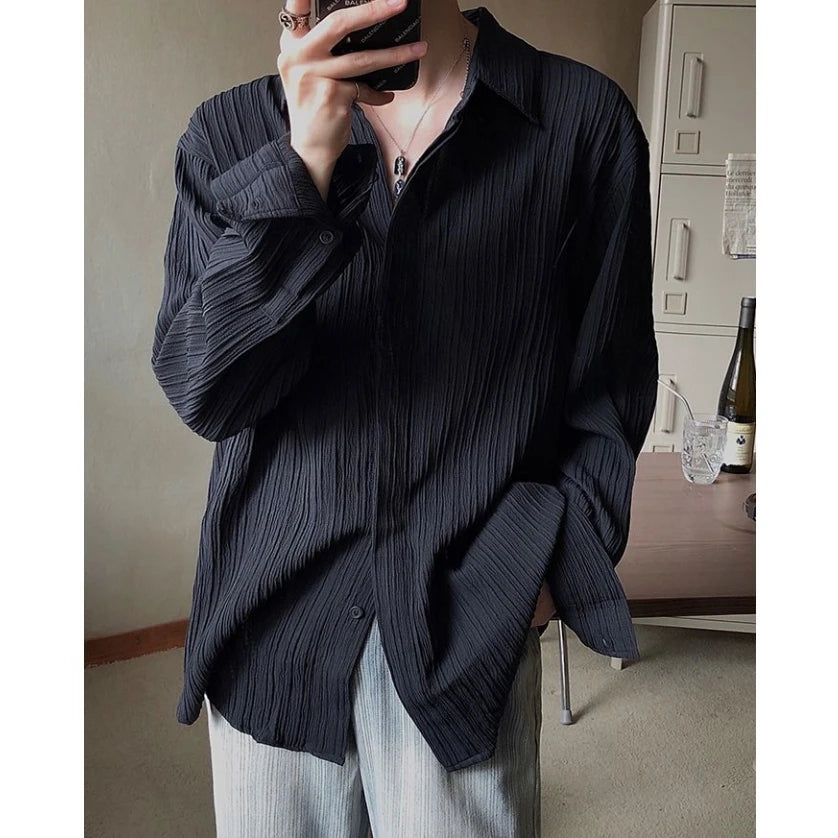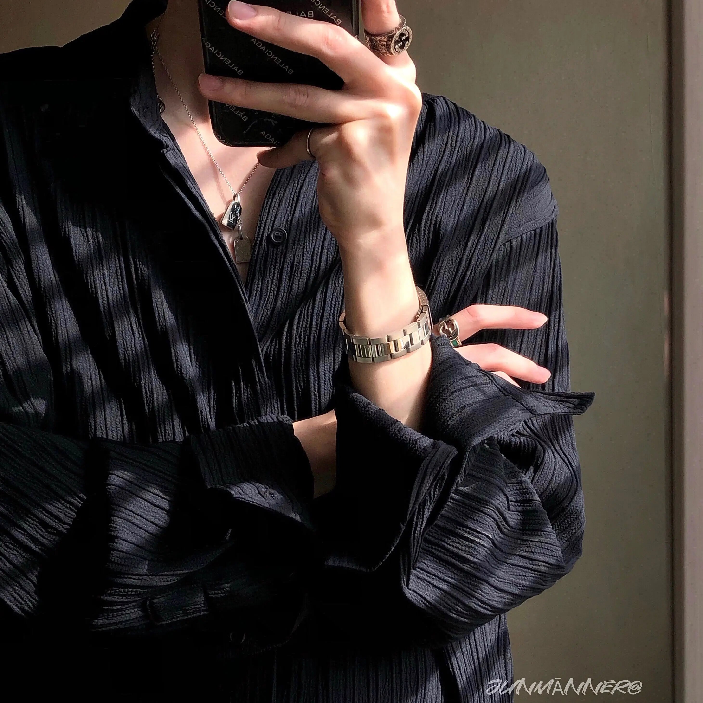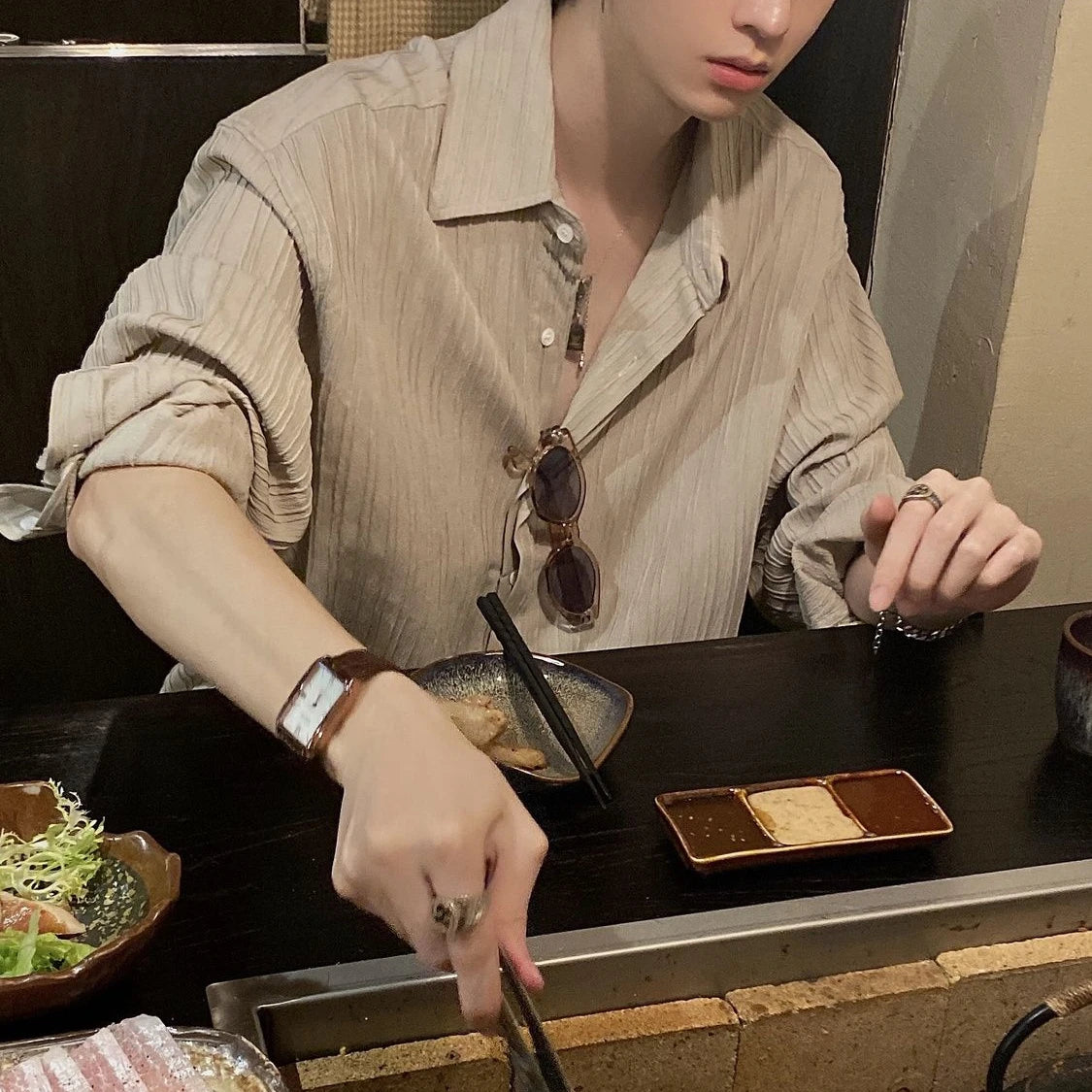 Korean Style Solid Color No-iron Men Shirts Long-sleeved Spring New High-end Concealed Button Trend Niche Texture Shirt Men