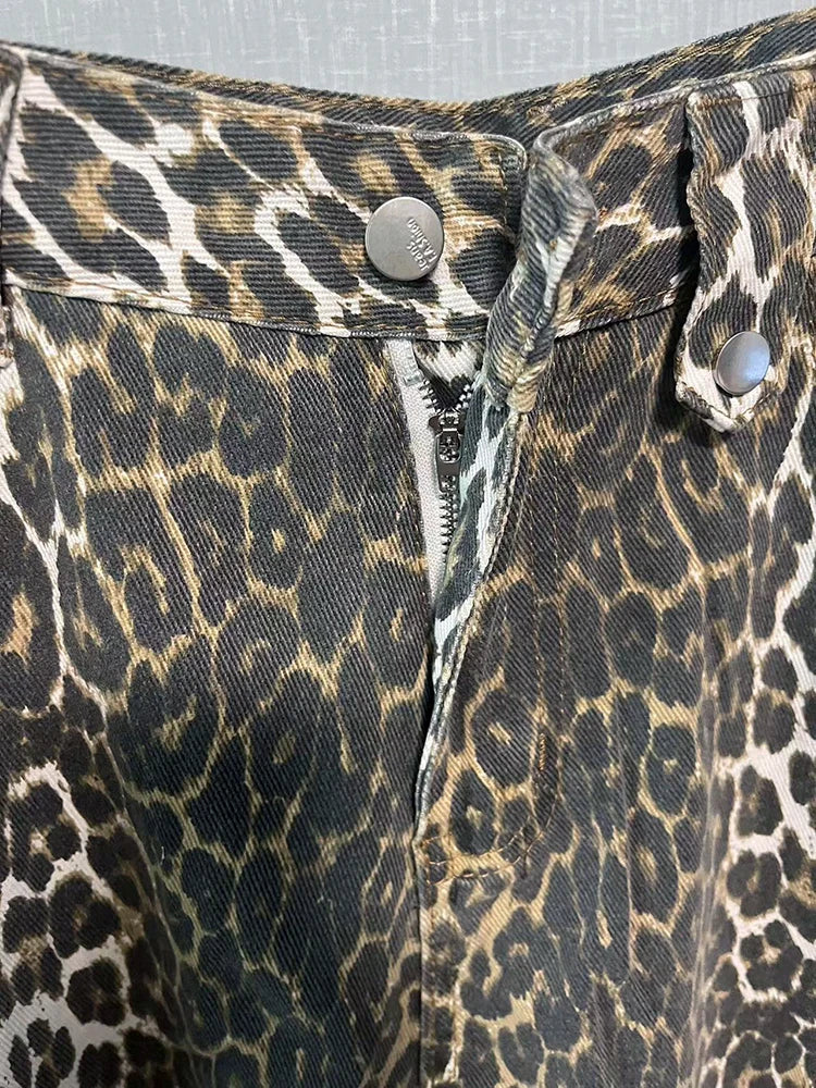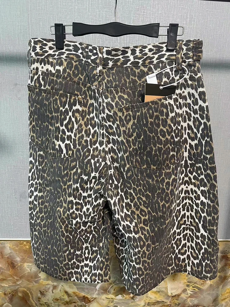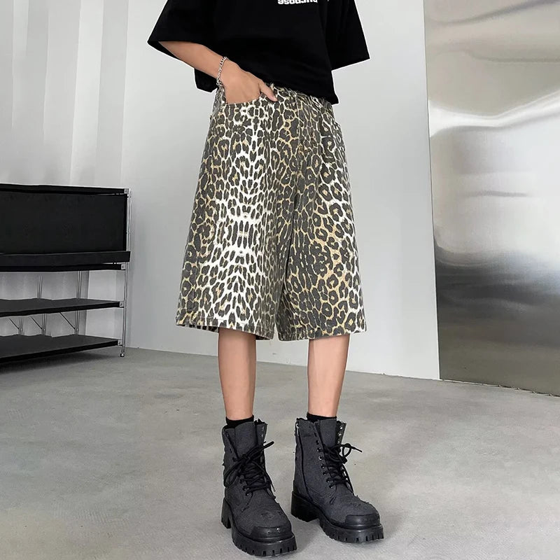 Leopard Print Design Personality Trendy Seven-point Pants Korean Original New Men Fashion Street Men's Shorts LZ3181