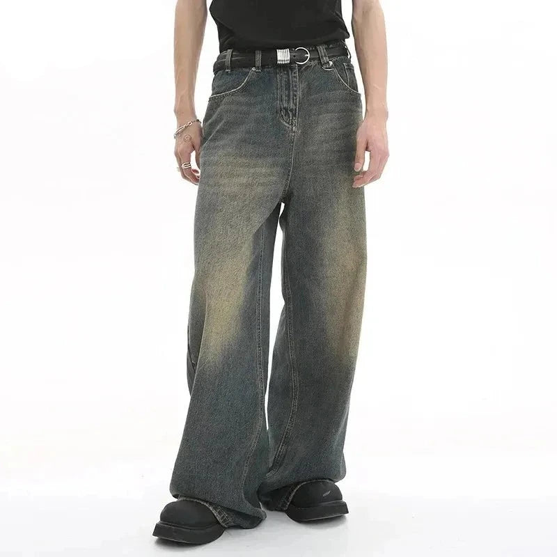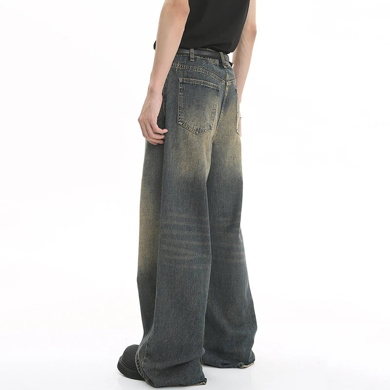 Old Male Pants Summer Blue Washed Men Denim Jeans Straight Casual Menwear Loose Wide Leg Trousers New Fashion