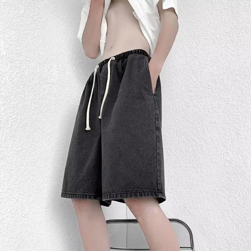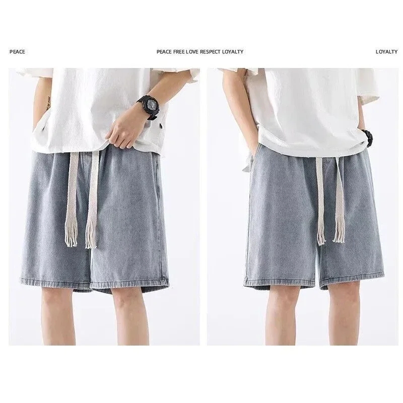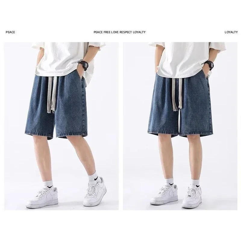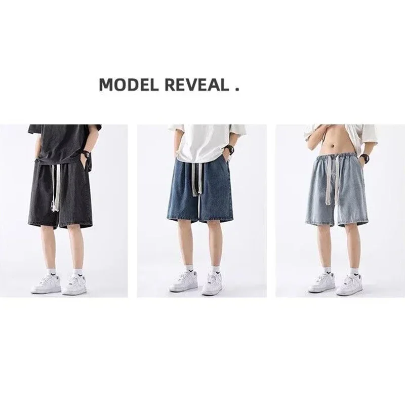 Men New Casual Shorts Male Summer Fashion Straight Leg Five Quarter Loose Fit Denim Pants High Street Wide Leg Baggy Pants