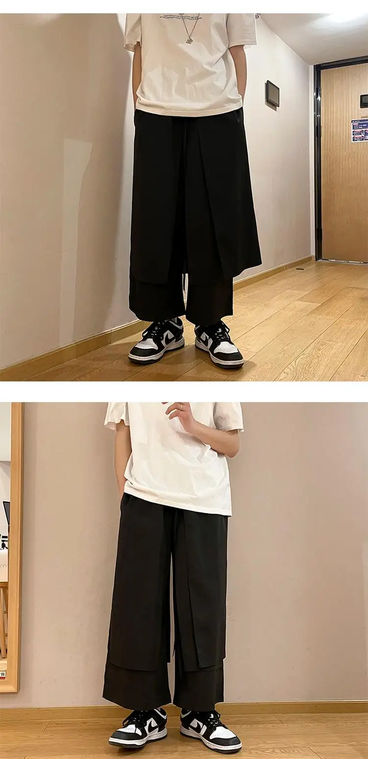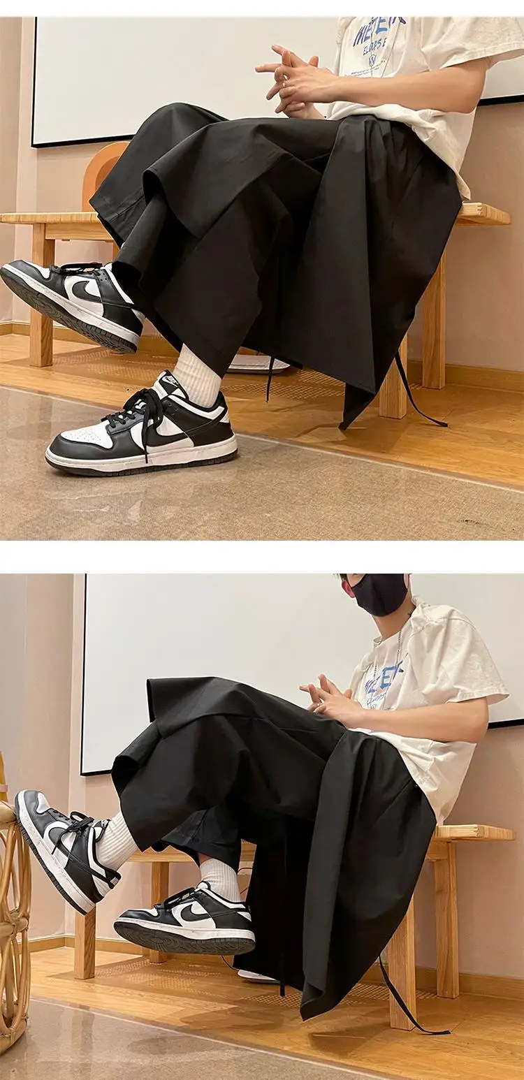 Men Pants New Fashion Solid Color Baggy Japanese High Street Chic Ankle Length Culotte Trousers Students Aesthetic Techwear