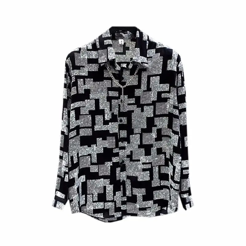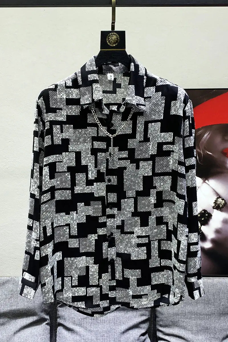 Men Spring Summer New Fashion Long Sleeve Casual Shirts Male Loose Print Blouses Men Button Up Ice Silk Thin Shirts