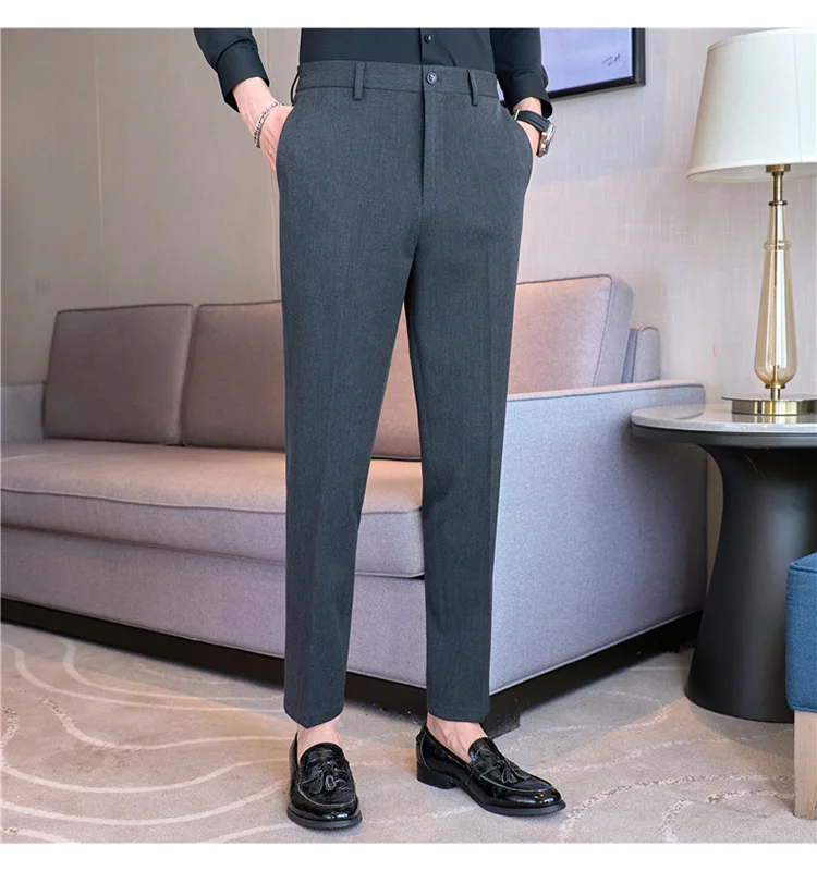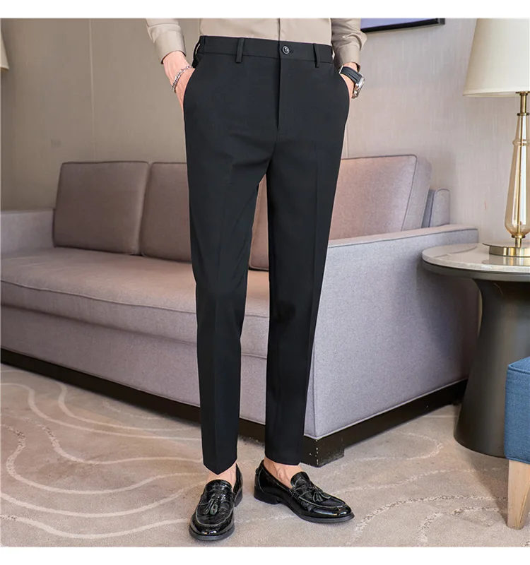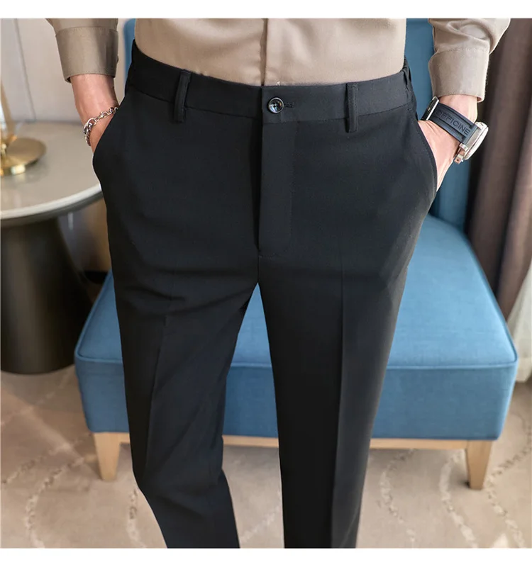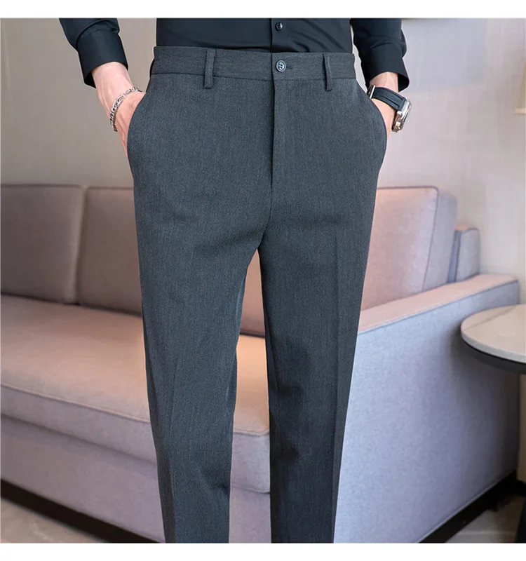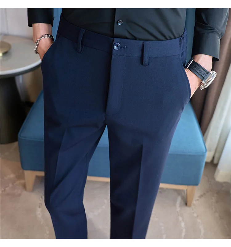 Men Suit Pants Autumn New British Style Elastic Waistband Slim Fit Solid Business Casual Formal Dress Trousers Men Clothing