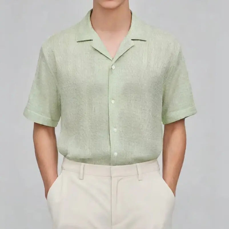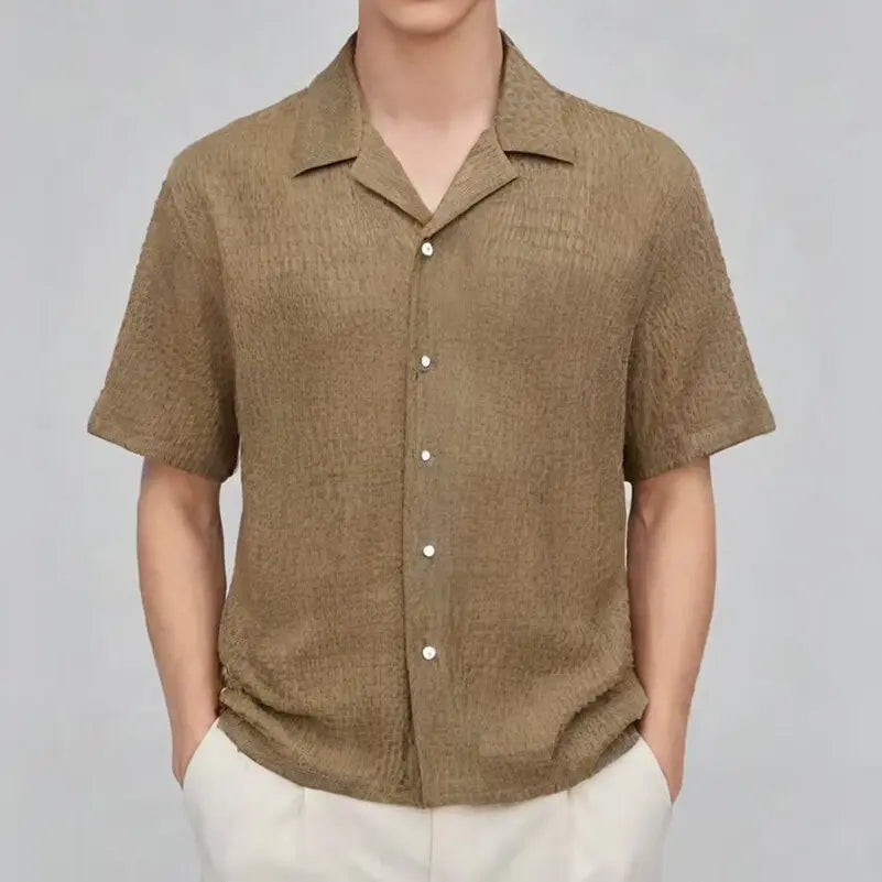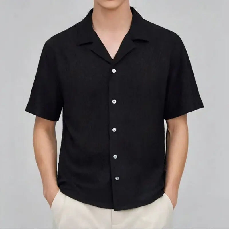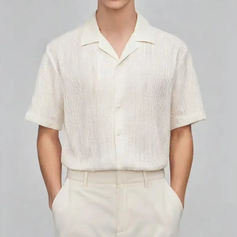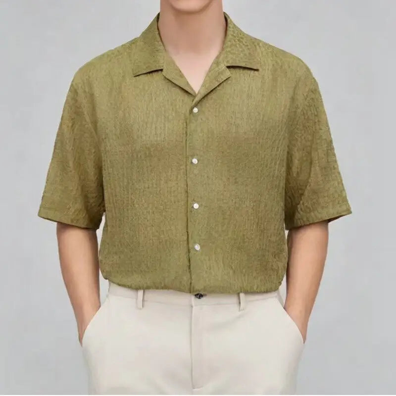 Men Summer Short Sleeve Shirt Slim Fit Suit Collar Ice silk Fabric Trendy Casual Top New Lightweight Fashion Streetwear Style