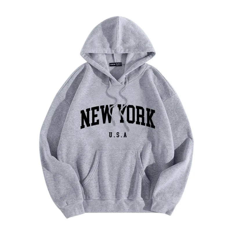 Men Women New York U.S.A City Hoodies Fashion Letter Printed Graphic Sweatshirts Loose Casual Harajuku Hooded Pullover Sportwear
