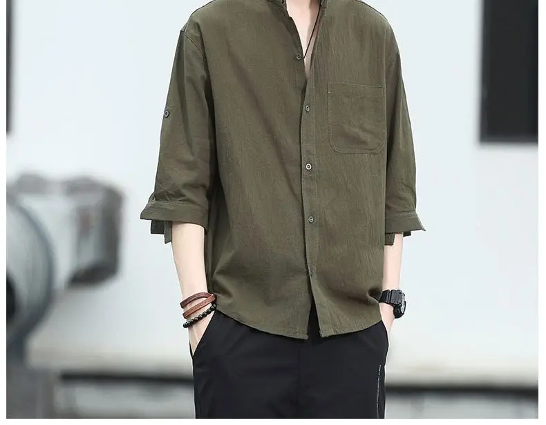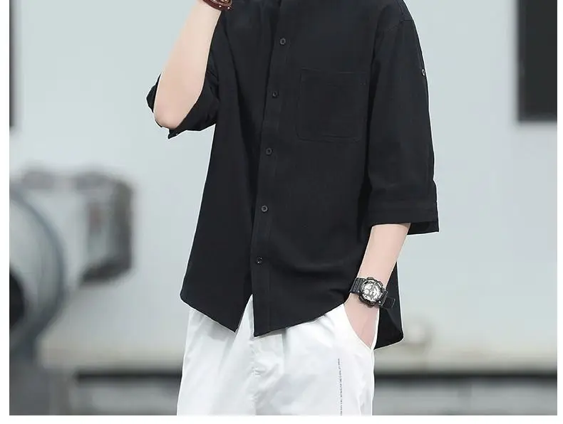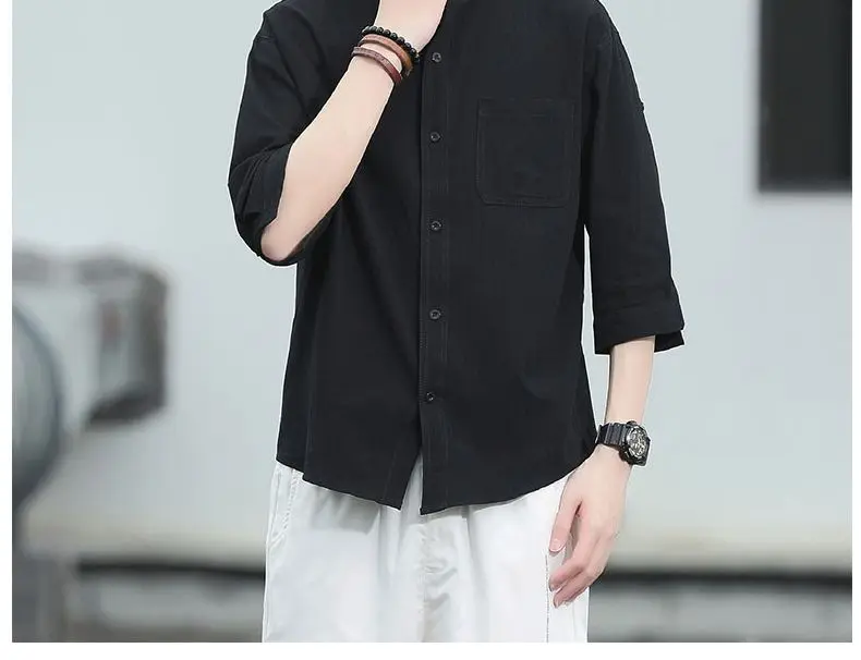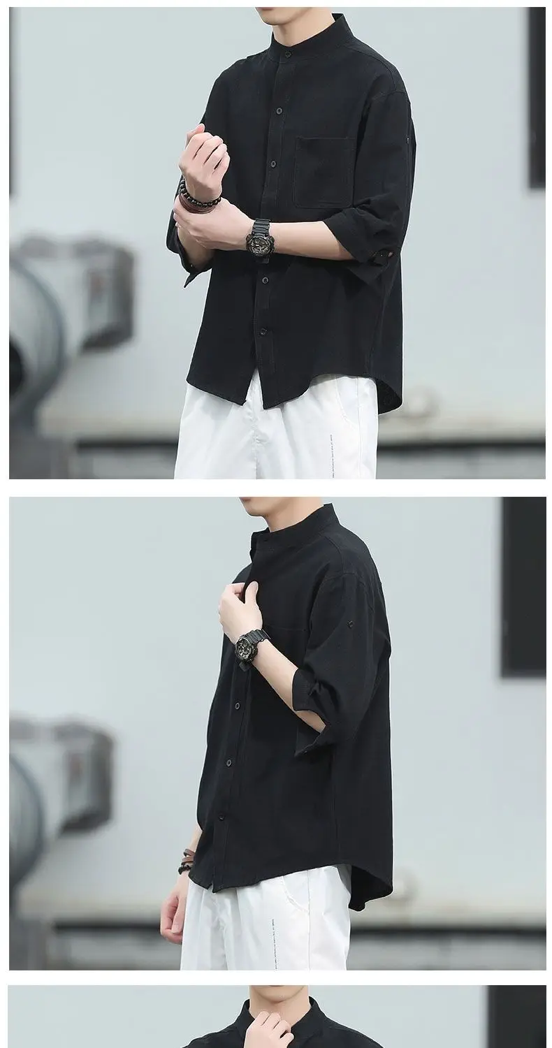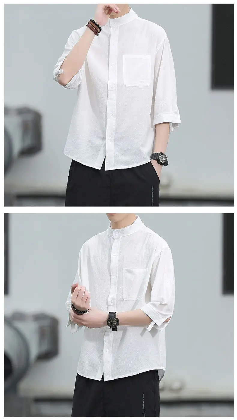 Men's Clothing New Solid Color Spring Summer Thin Fashion Casual Round Neck Loose Simplicity Handsome Button Pockets Shirts