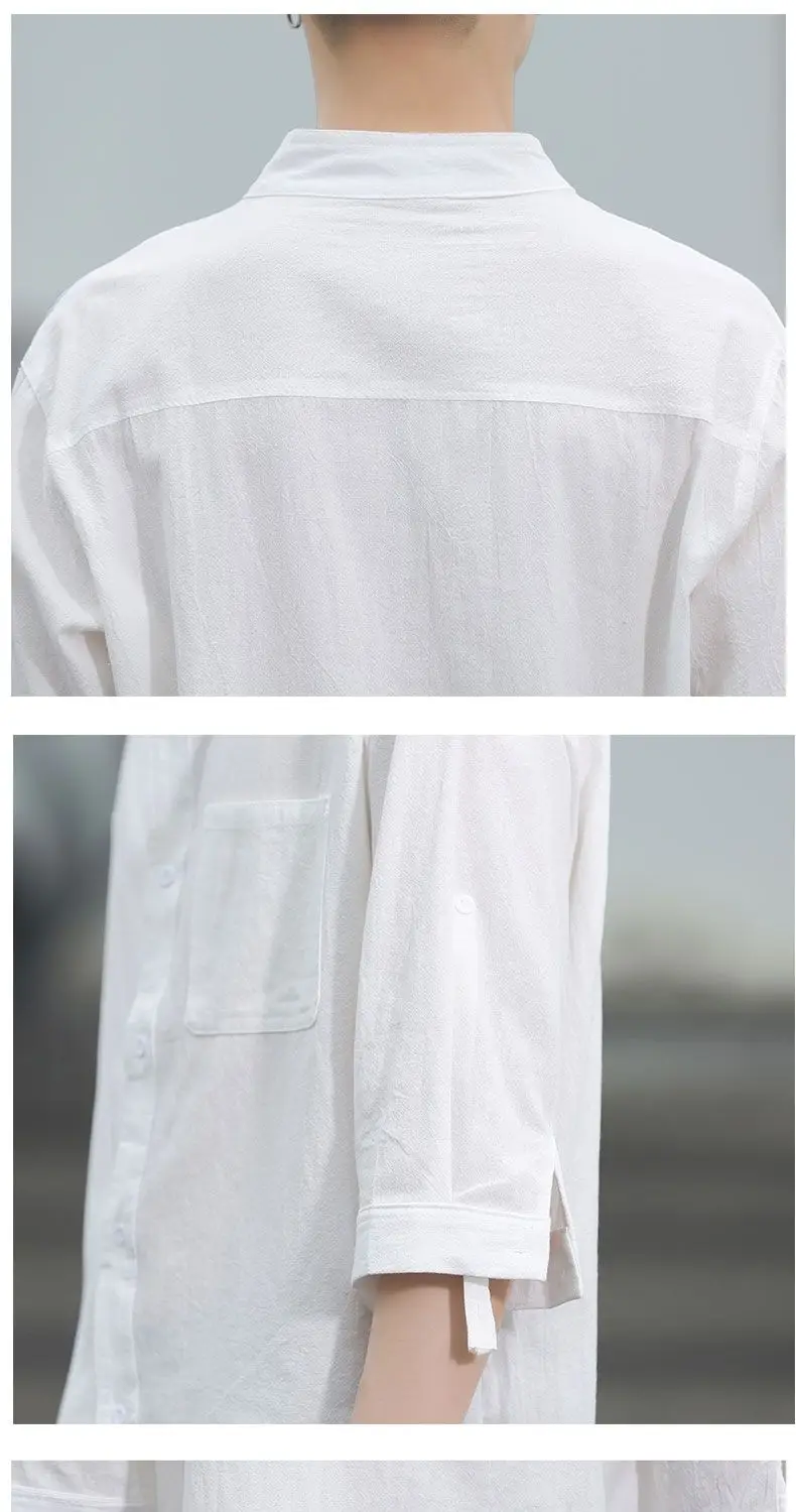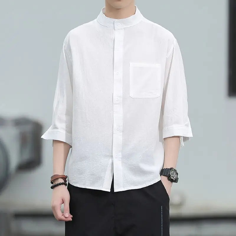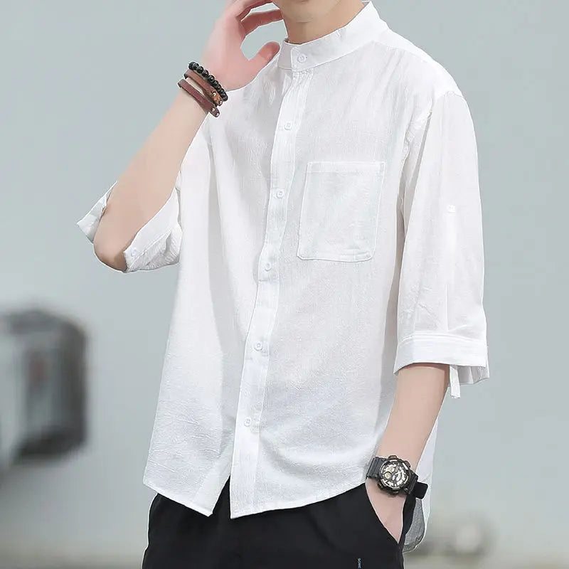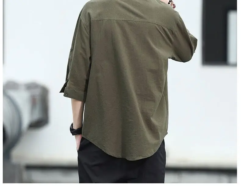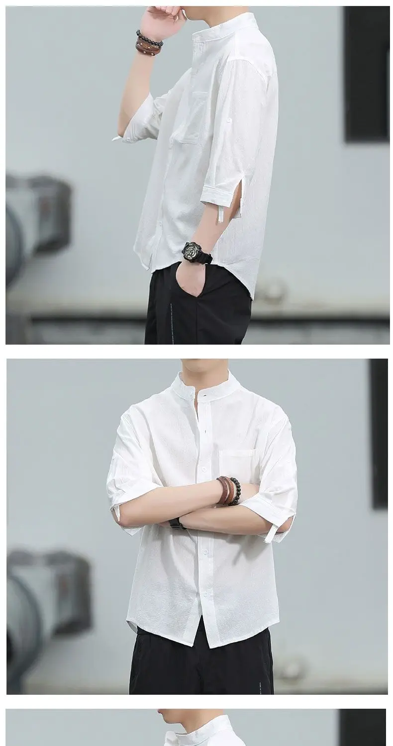 Men's Clothing New Solid Color Spring Summer Thin Fashion Casual Round Neck Loose Simplicity Handsome Button Pockets Shirts