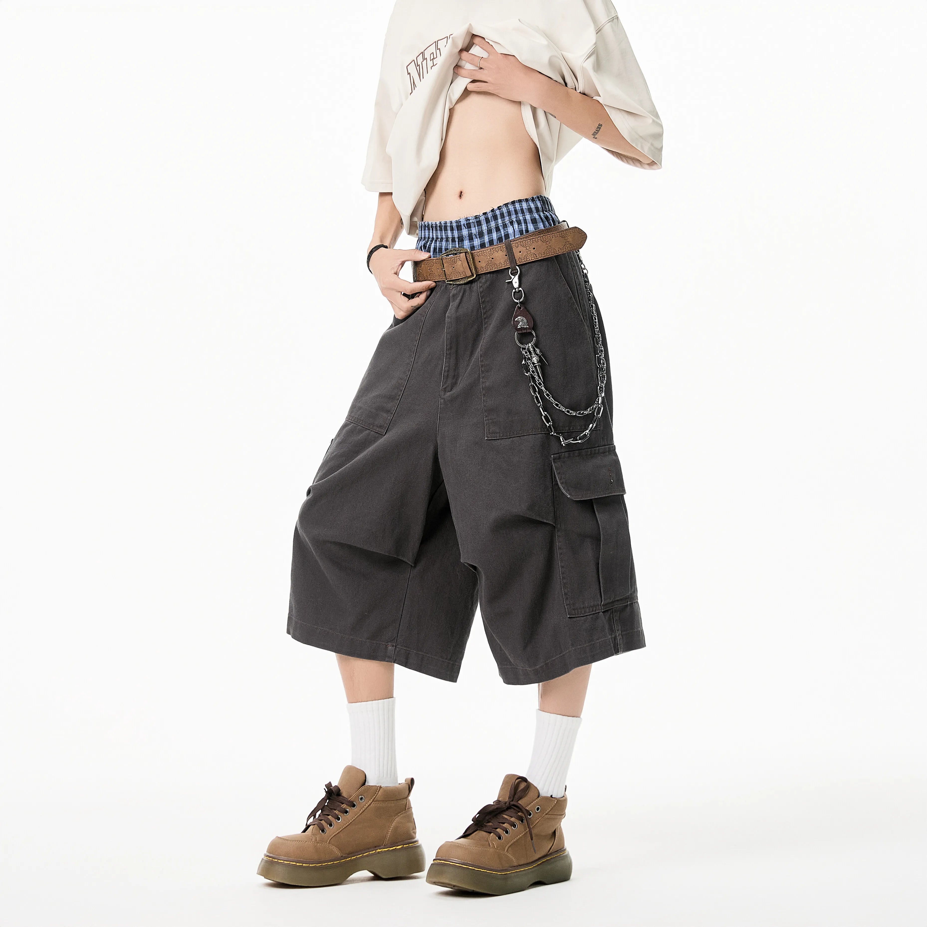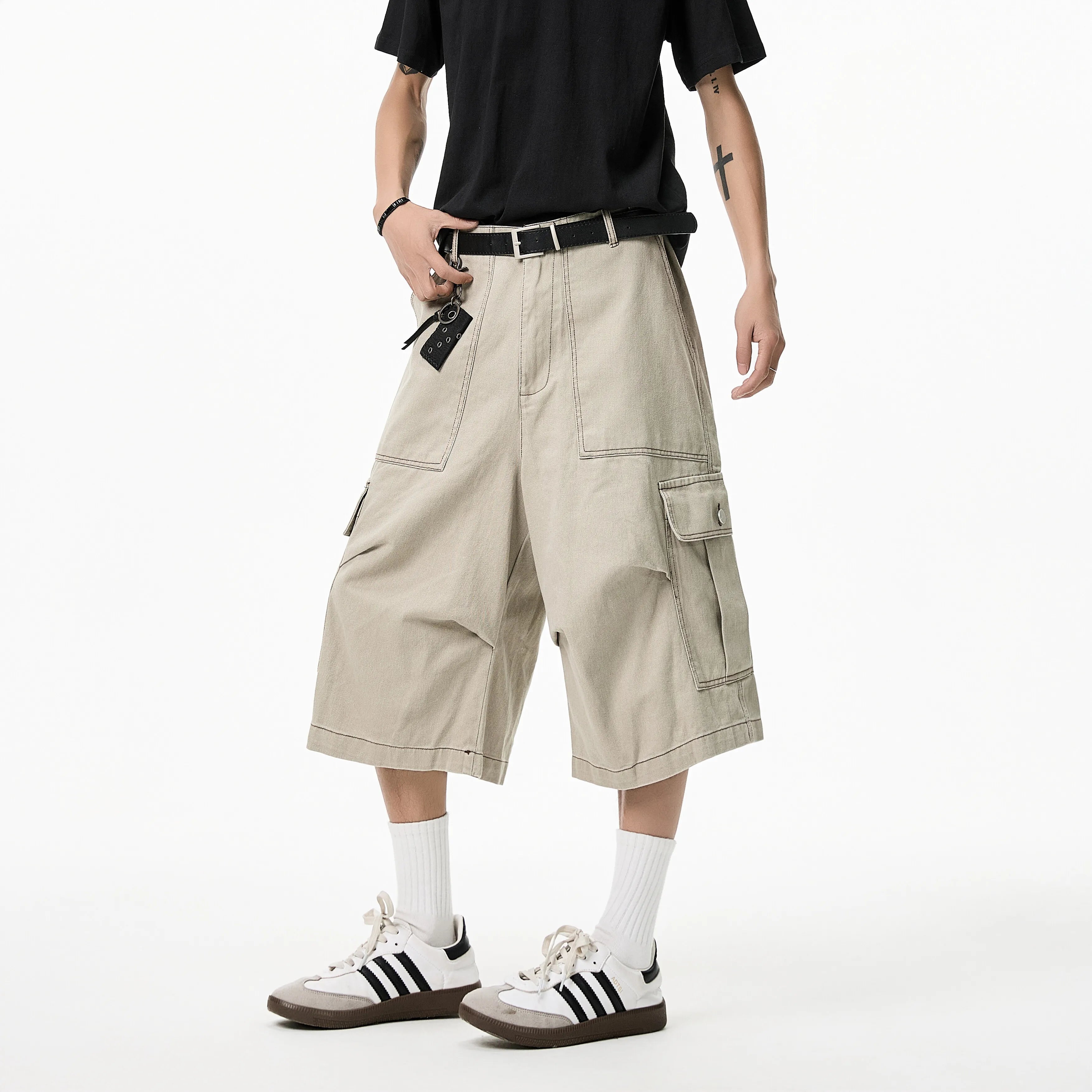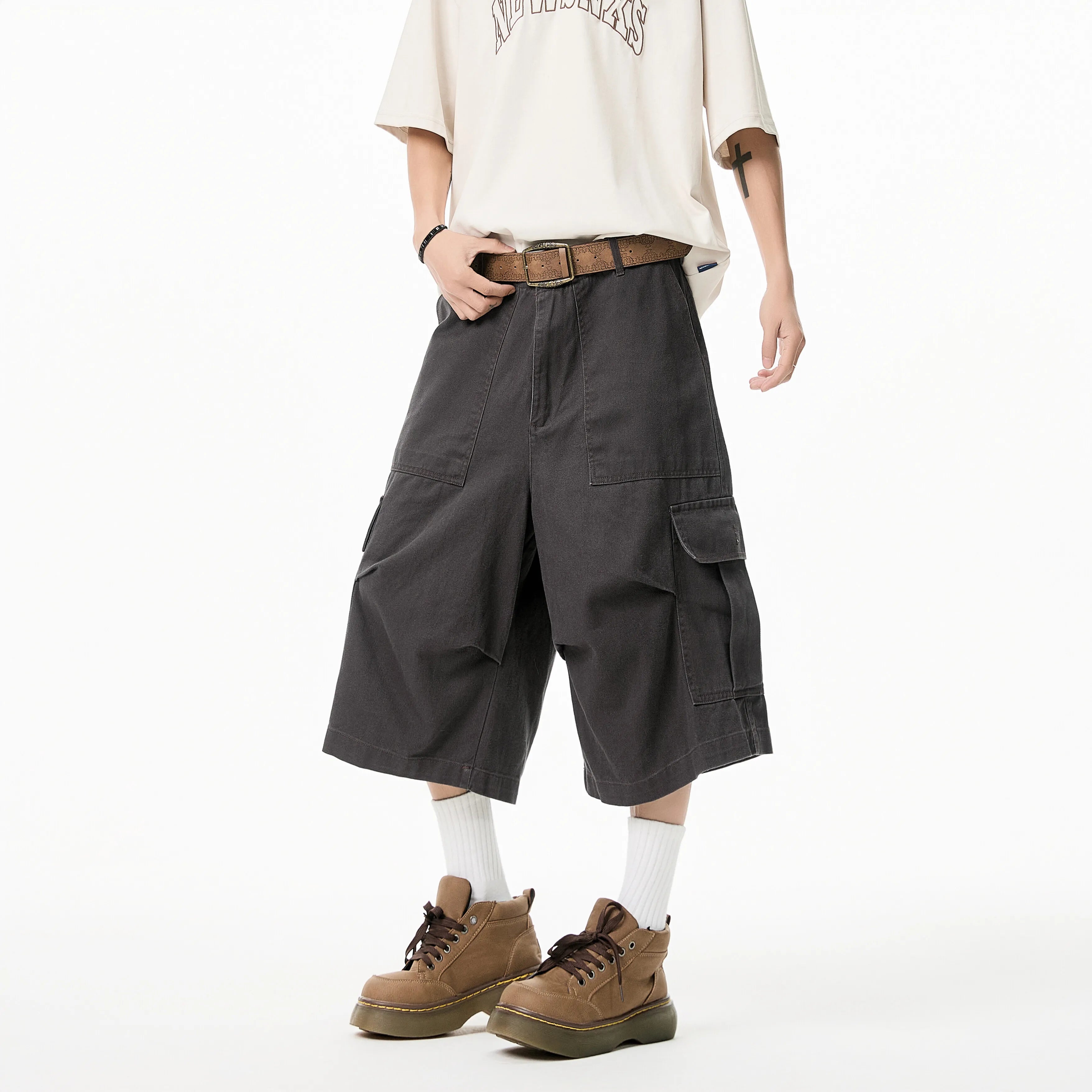 Mens Cropped Casual Pants Loose New Cotton Cargo Multi Pocket Workwear Summer Outdoor Utility Stretch Comfort Relaxed Fit