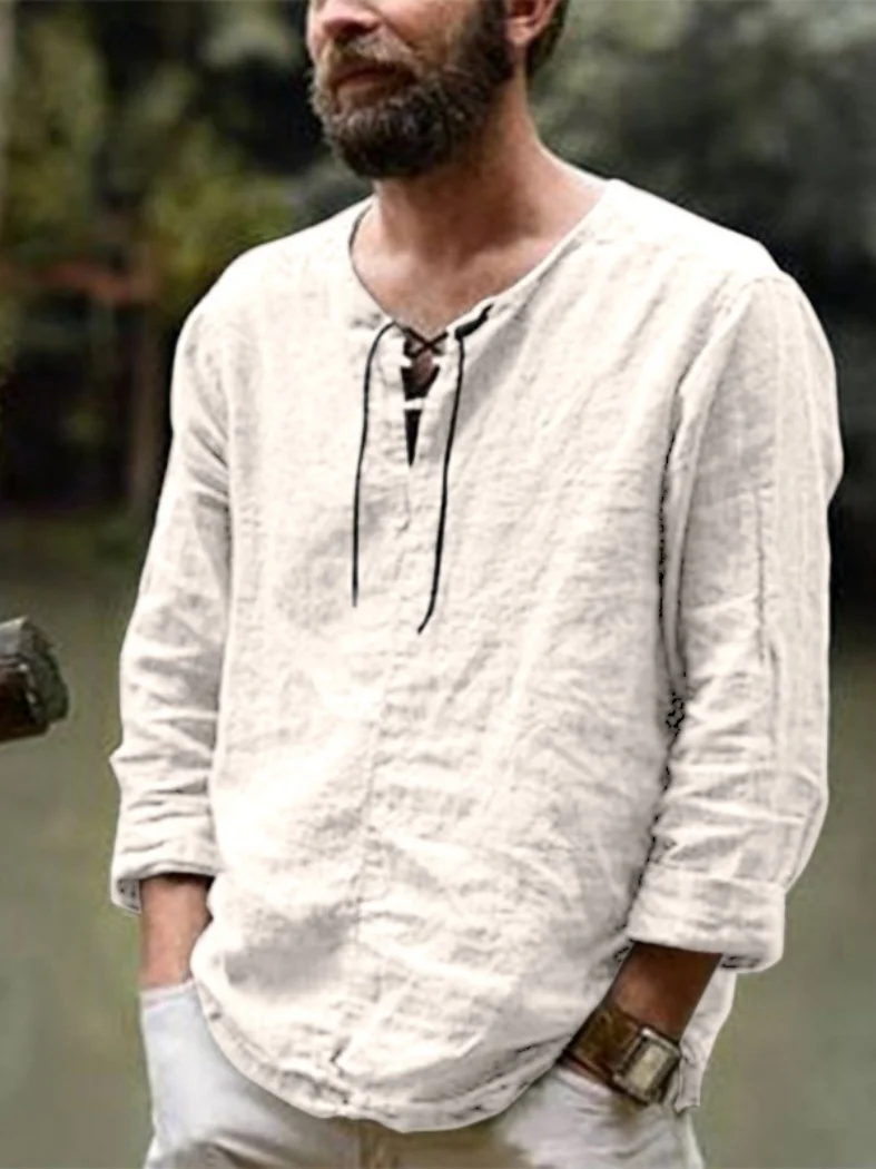 Men's New Spring And Autumn Casual Pullover Long Sleeve High Quality Classic Comfortable Solid Color Trend Cotton Linen Shirt