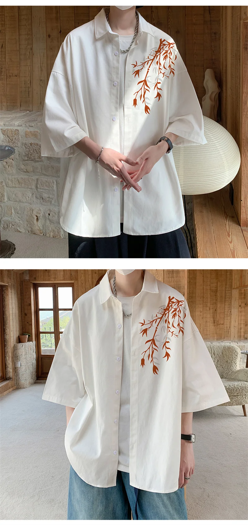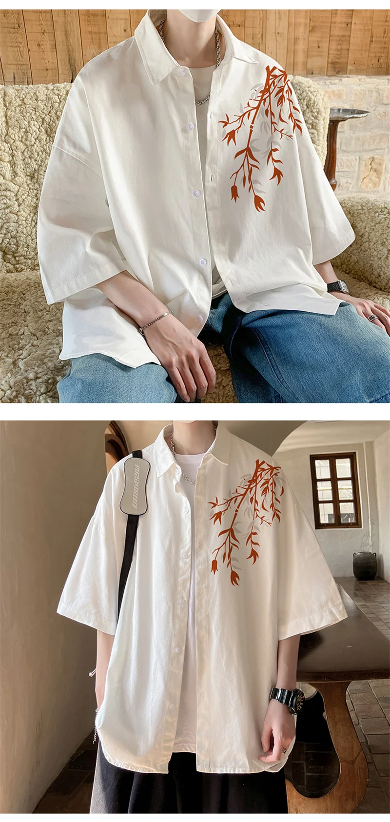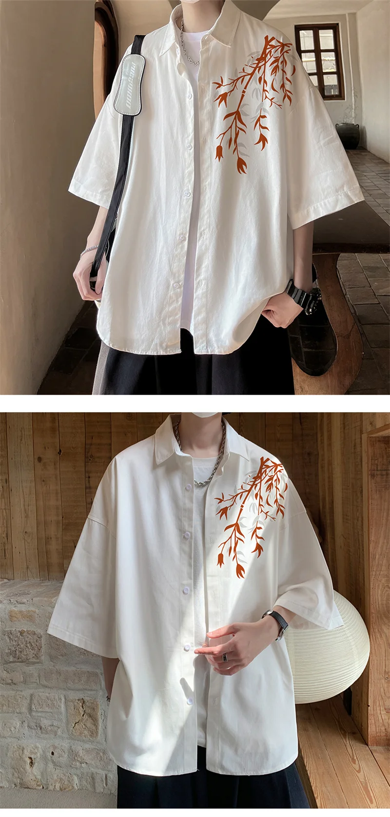 Men's Oversized Shirts Bamboo Print Mens Blouse White Fashion 5XL Oversize Shirt Casual Wear Summer for Men New Clothing