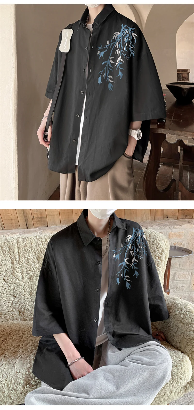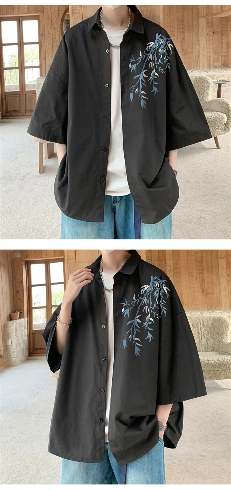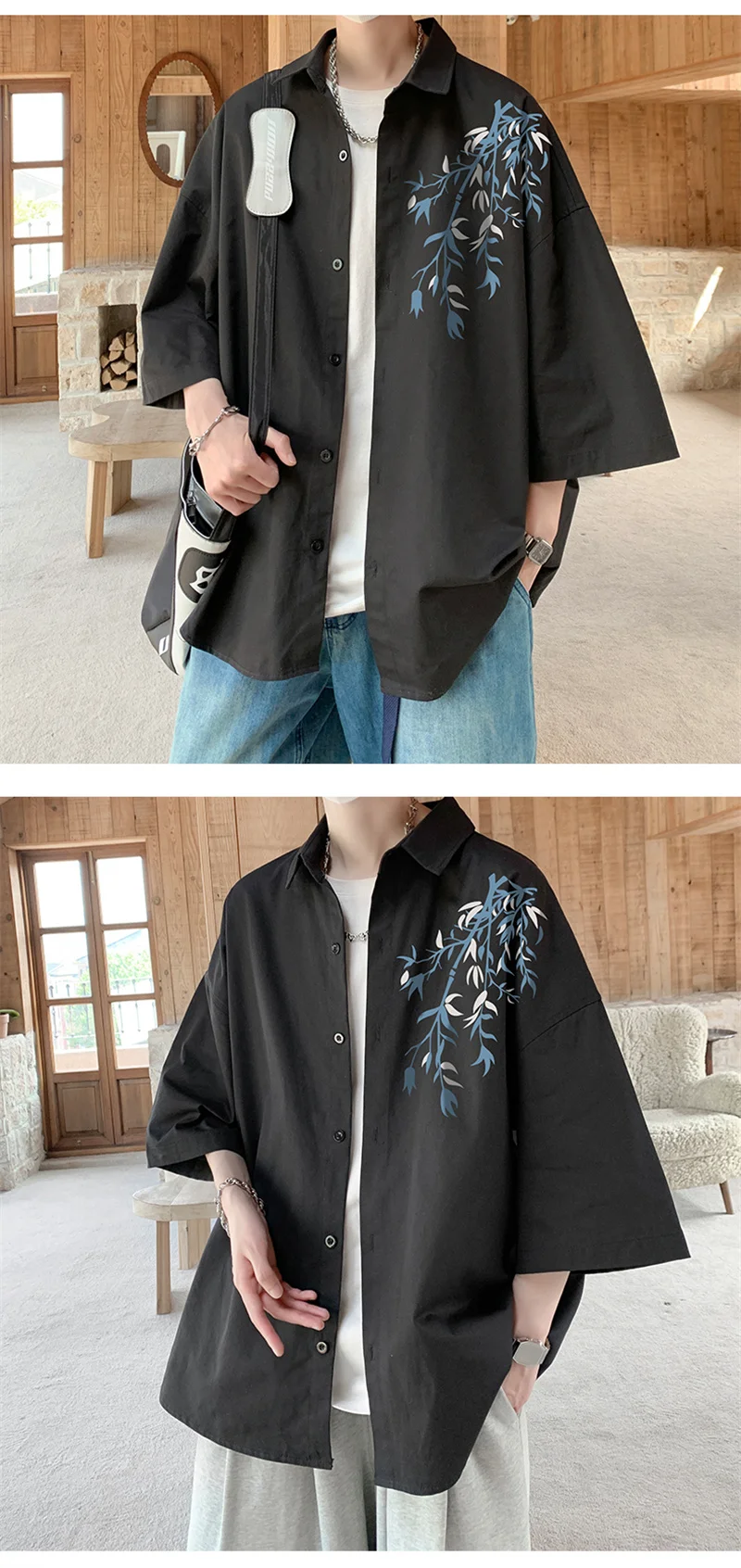 Men's Oversized Shirts Bamboo Print Mens Blouse White Fashion 5XL Oversize Shirt Casual Wear Summer for Men New Clothing