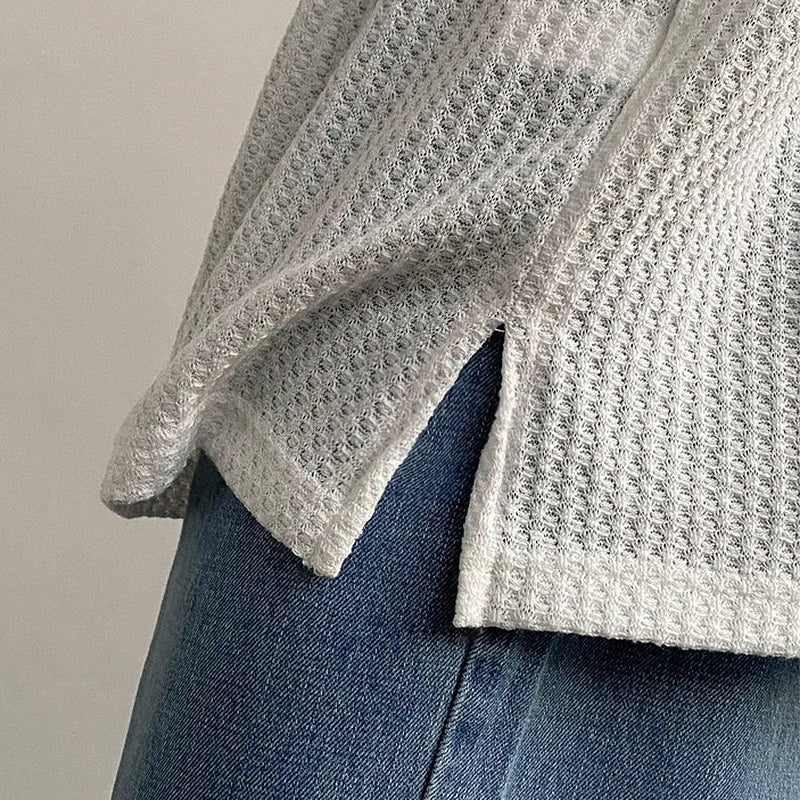260G Men's Autumn Heavyweight Premium Waffle Basic T-shirt Long Sleeve Simple Solid Color Delicate White Tees Casual Daily Tops