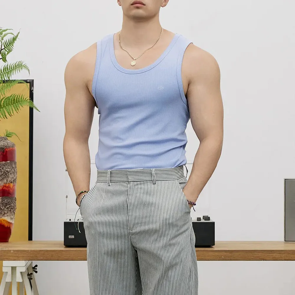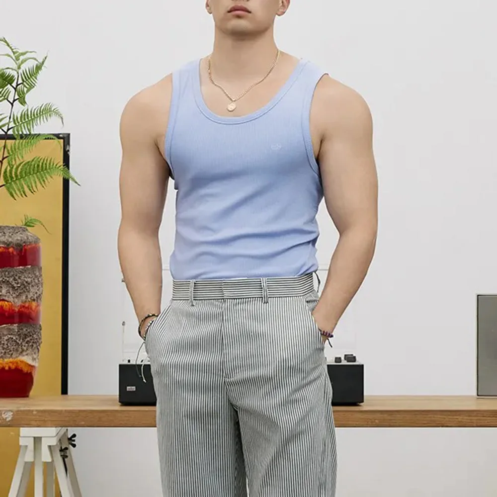 Men's Simple Solid Color Sleeveless Sports Vest Slim Elastic Quick-Drying Breathable Fashion Trend Summer New Men Gym Tops