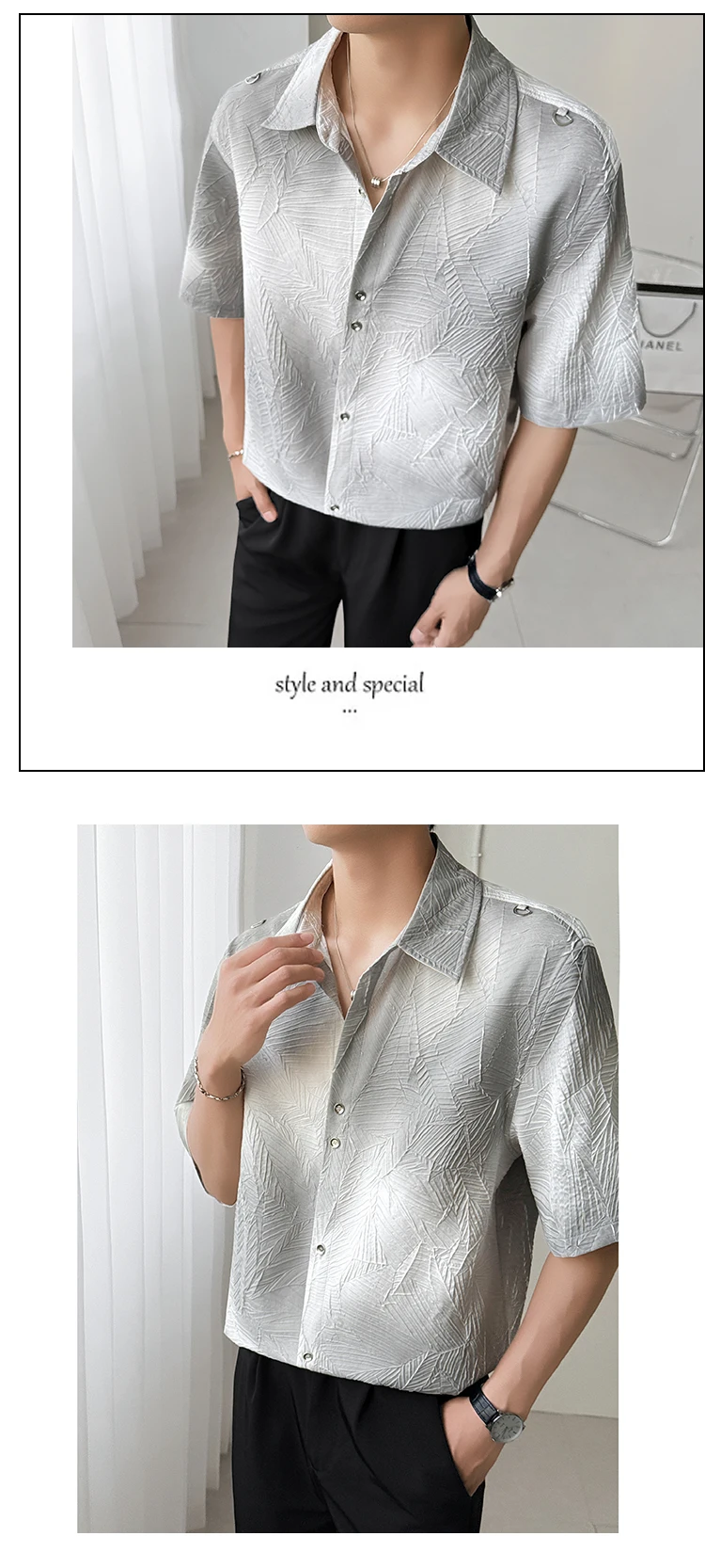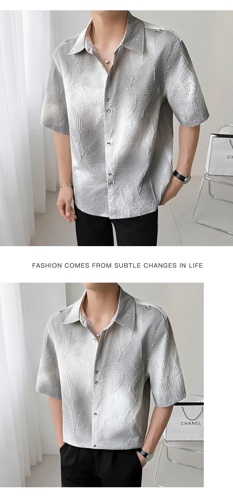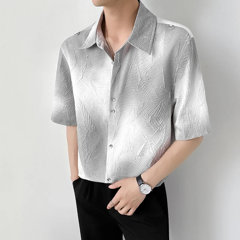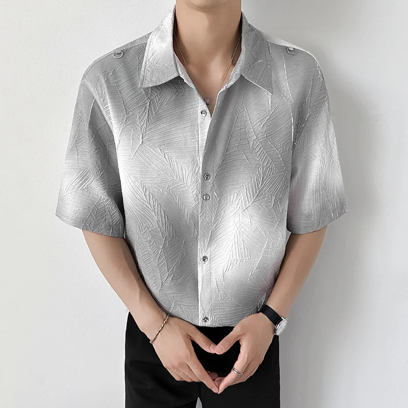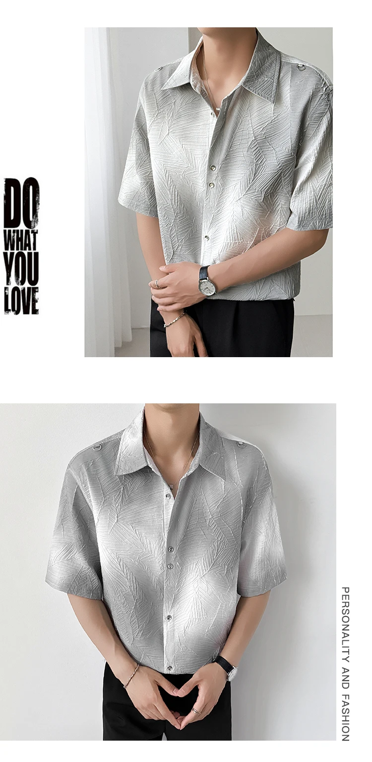 Mens Slim Fit Short Sleeve Shirt man Gradient Color Trendy Summer Fashion Youth Style New Tech Fabric Casual Stylish Streetwear