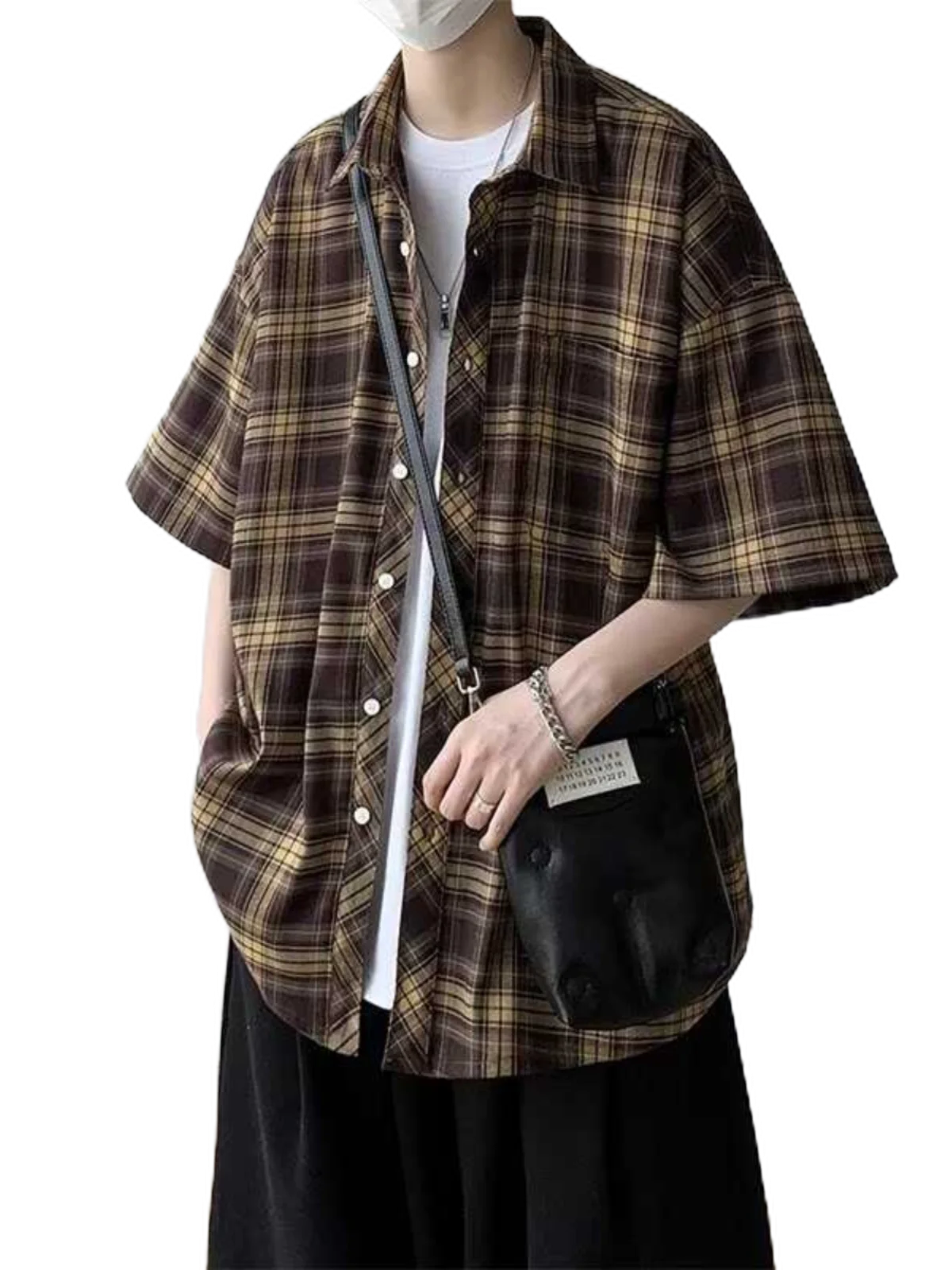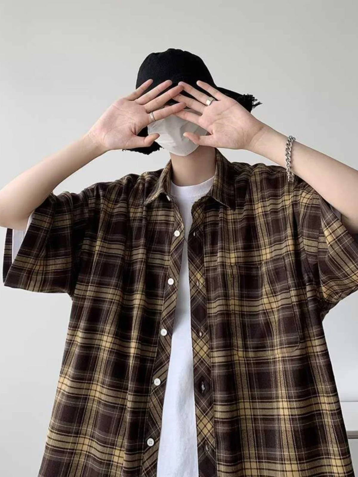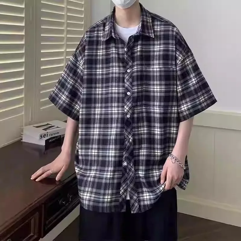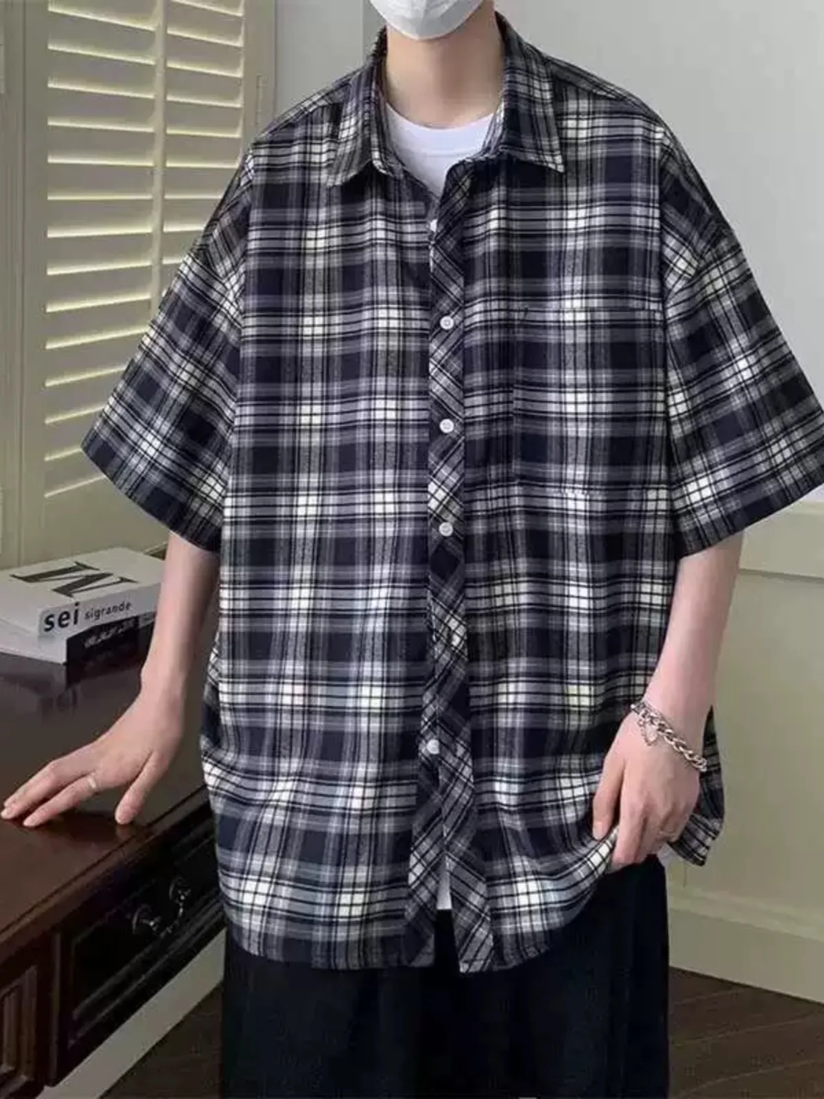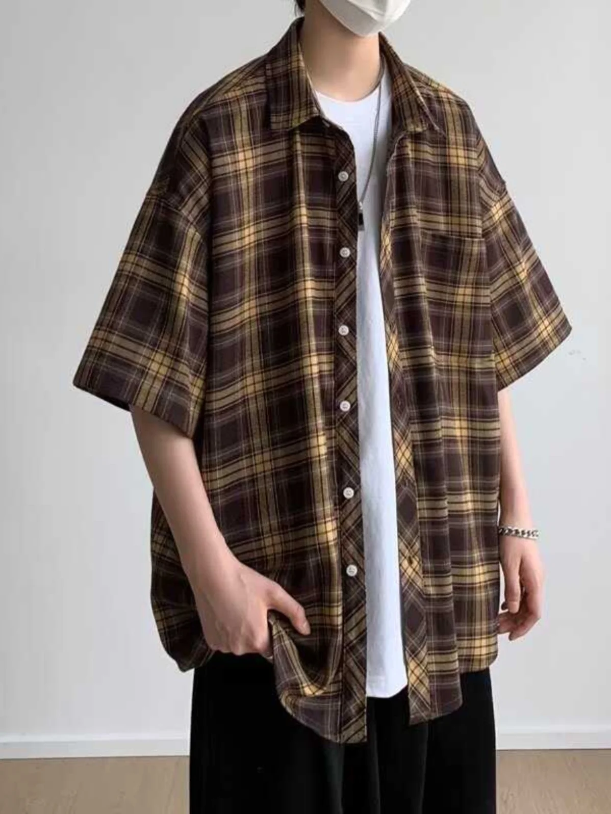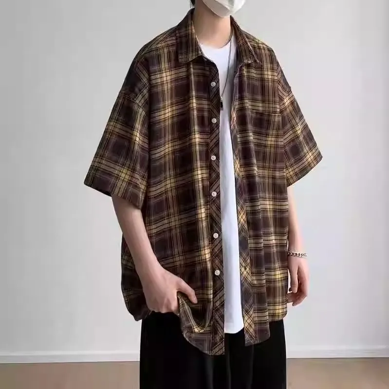 New American Shirt Men's Summer Trend Brand Trendy Short Sleeve Plaid Men's Shirt Casual TOP