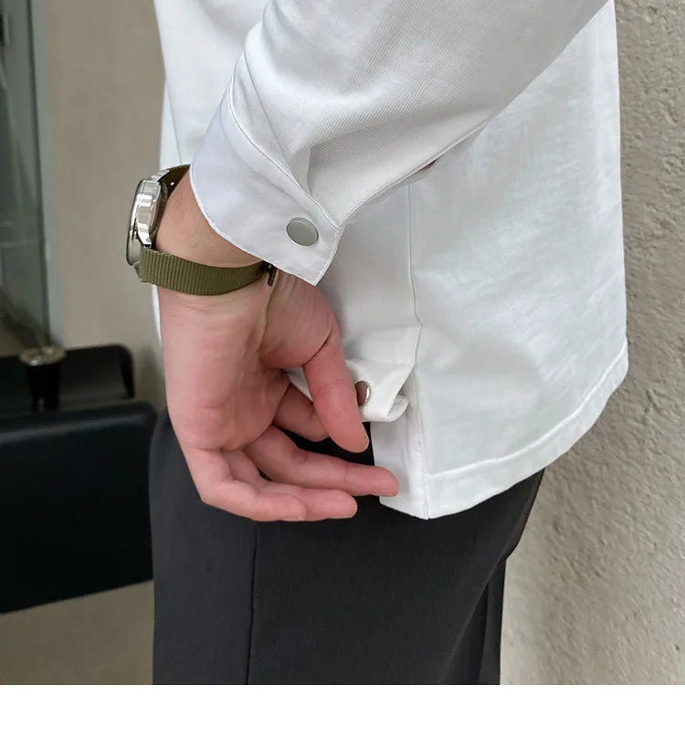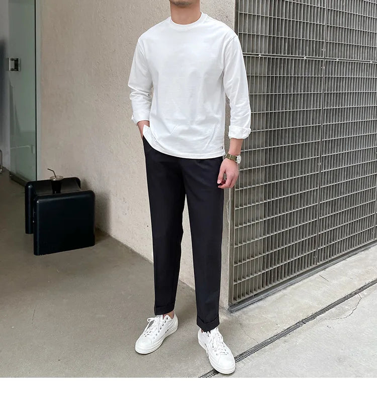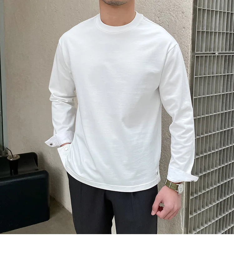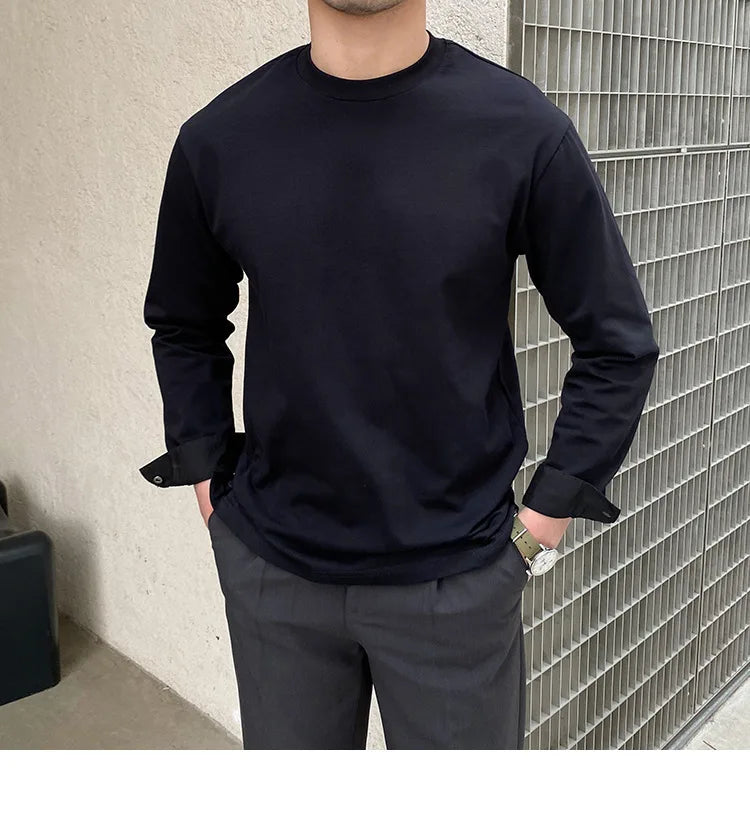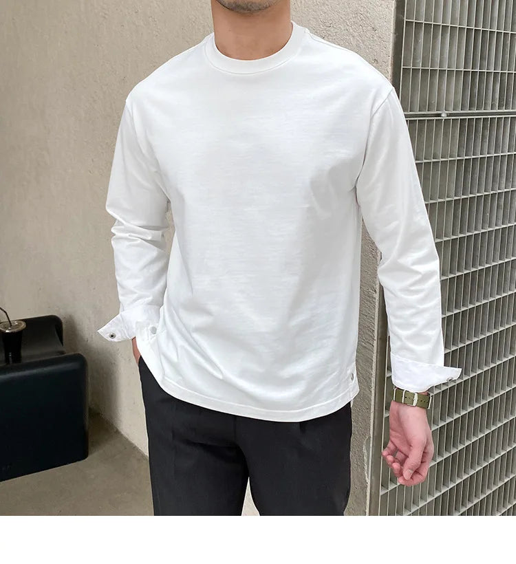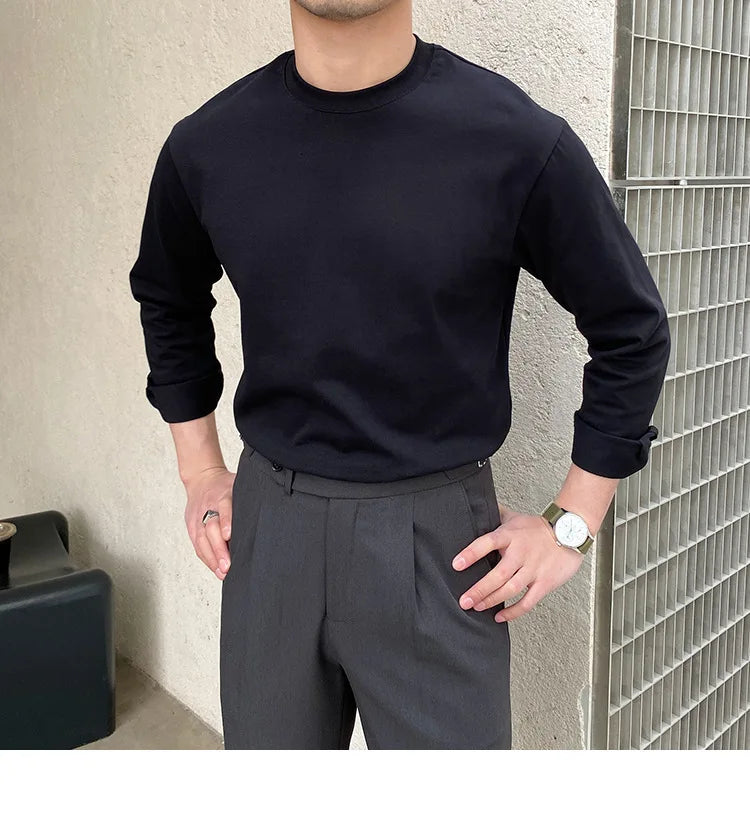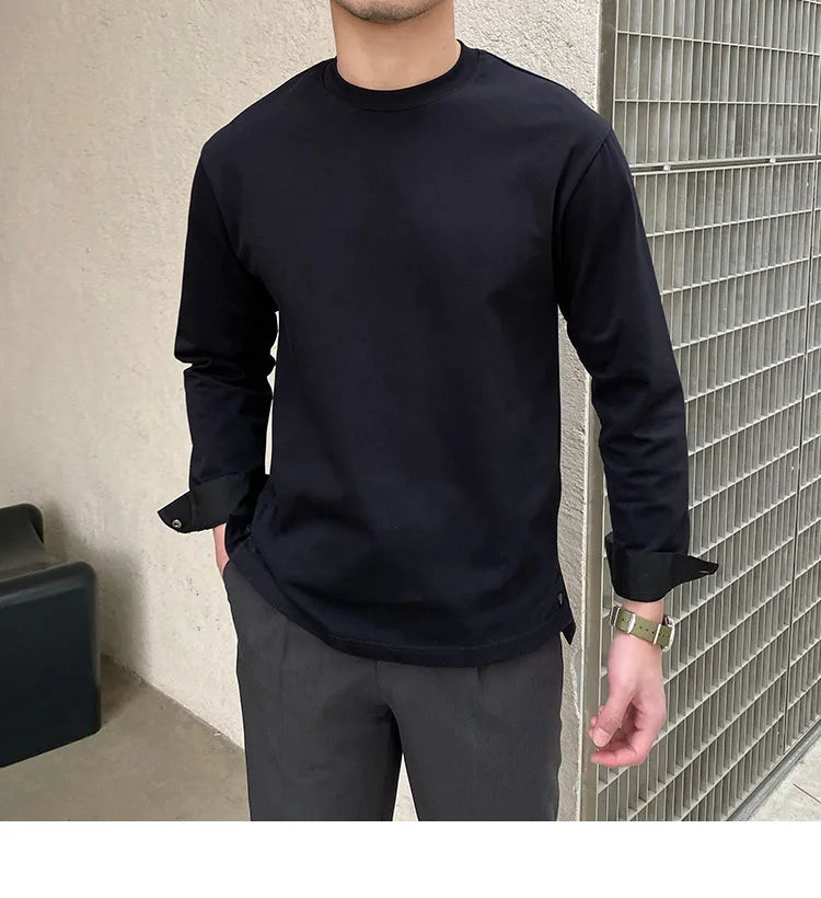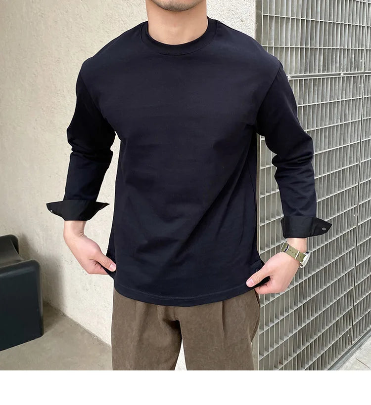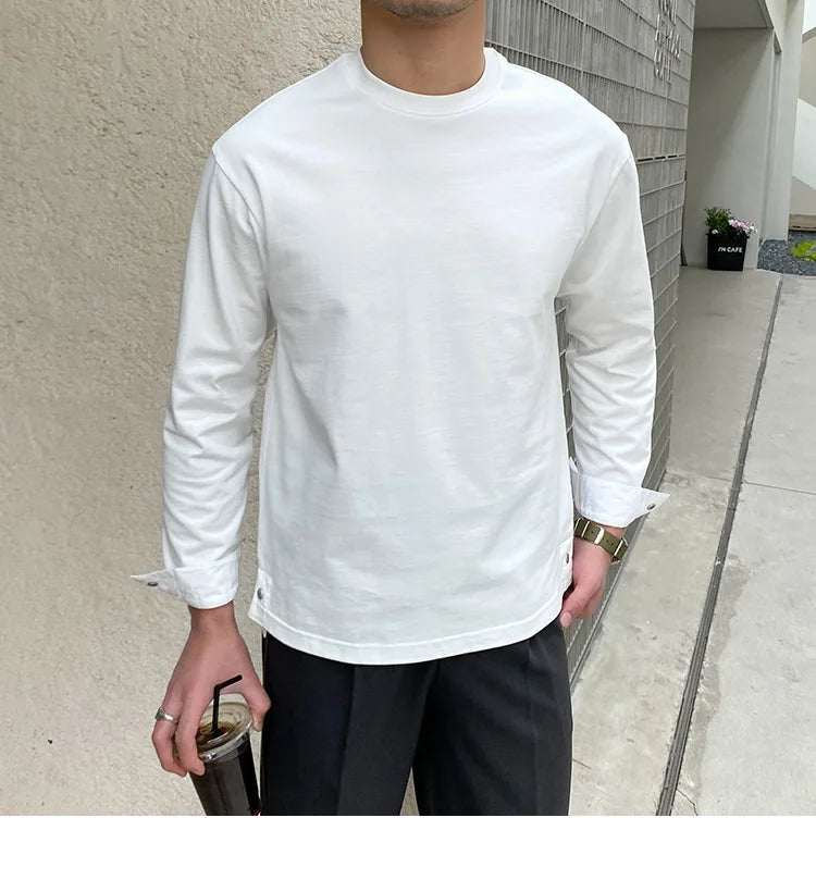 New Autumn Fashion Men T-shirt Light Luxury Solid Color Long Sleeve Tops Leisure Streetwear Casual O Neck Basic Shirts M-3XL