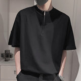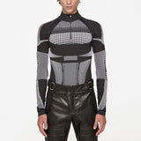 New Fashion Dots Print Slim T-shirts Mens Clothes Y2K Trend Zipper Turtleneck Tops Spring Summer Men Trend Tees Streetwear
