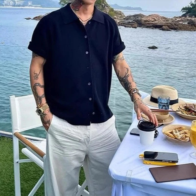 New Fashion Men Cardigan Tops Luxury Knitted Half Sleeve Shirts Leisure Button-down Shirts for Men Korean Style Premium Knitwear