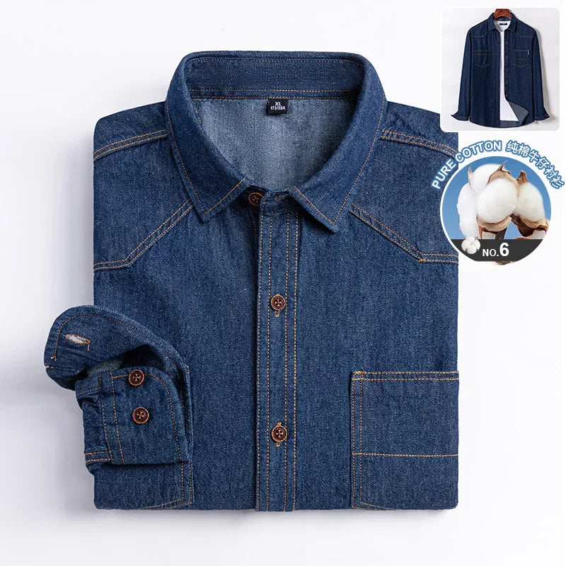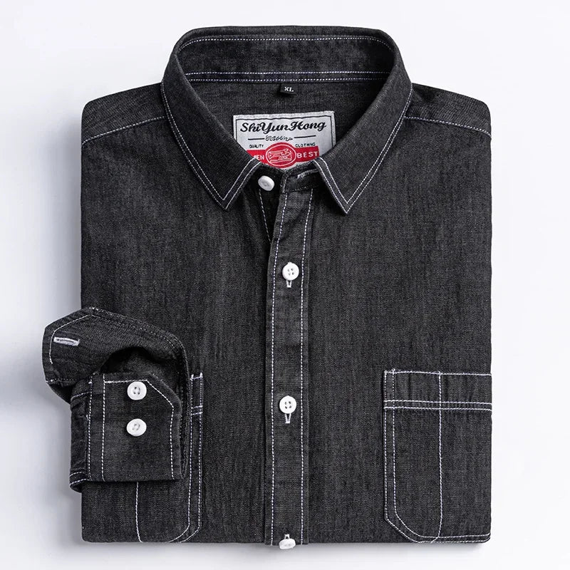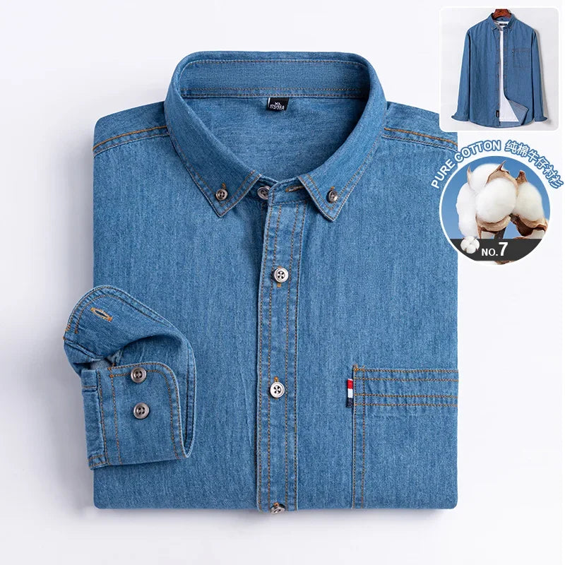 New in shirt long-sleeve jean shirts for men single pocket Casual plain shirt Fashion korean social 100%cotton cowboy clothes