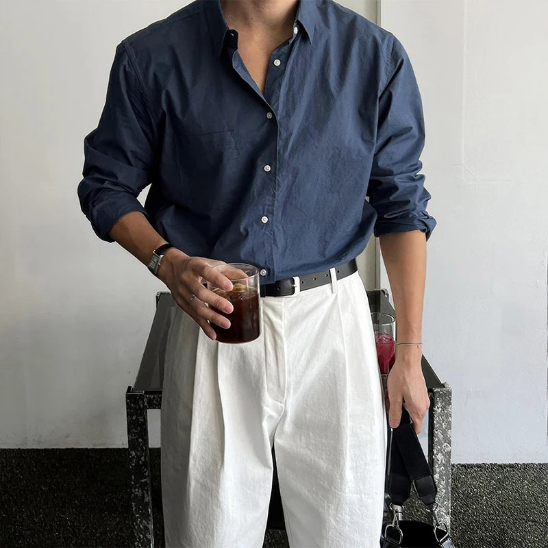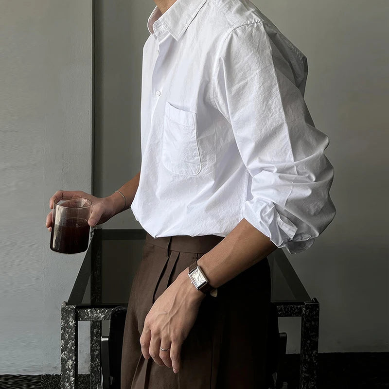 New Luxury Textured Business Men Shirts Leisure Solid Color Long Sleeve Korean Popular Men's Clothing High Quality Cardigan Tops