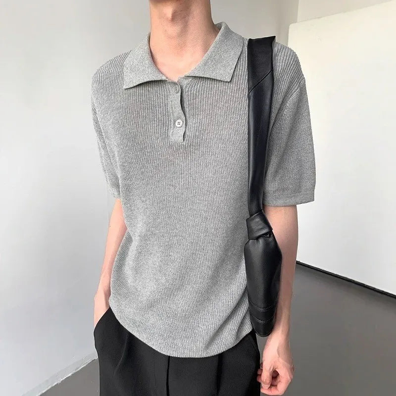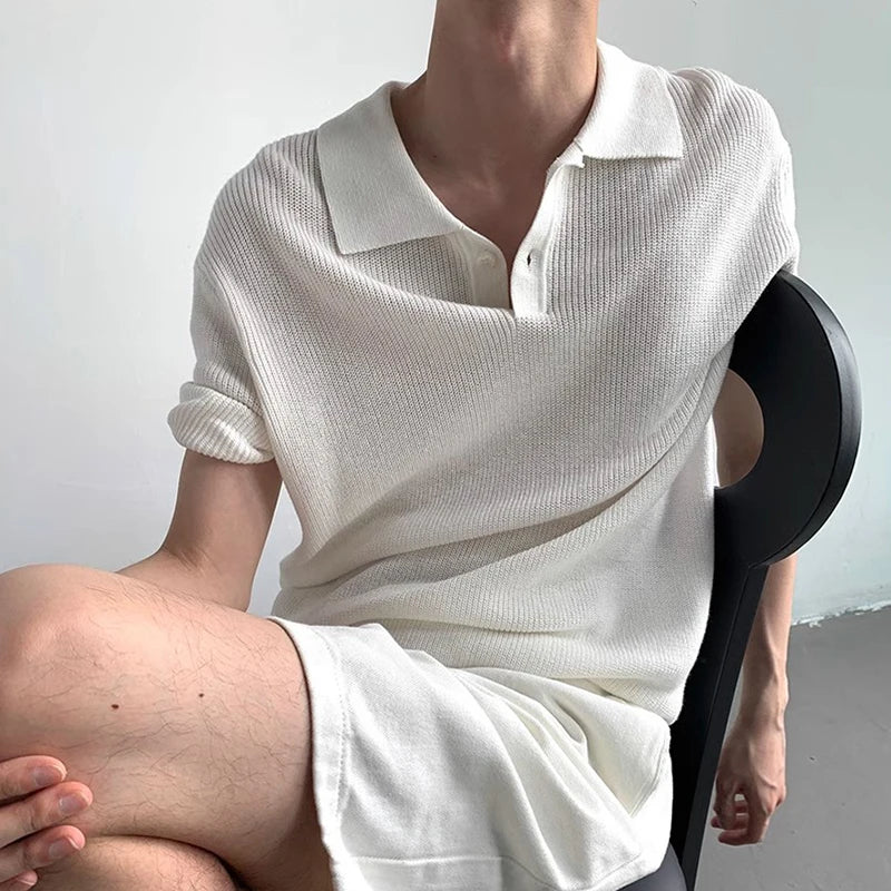 New Men Fashion T-shirt Luxury Hollow Out Polo Shirt Leisure Short Sleeve Solid Color Breathable Knitwear High Quality Tops