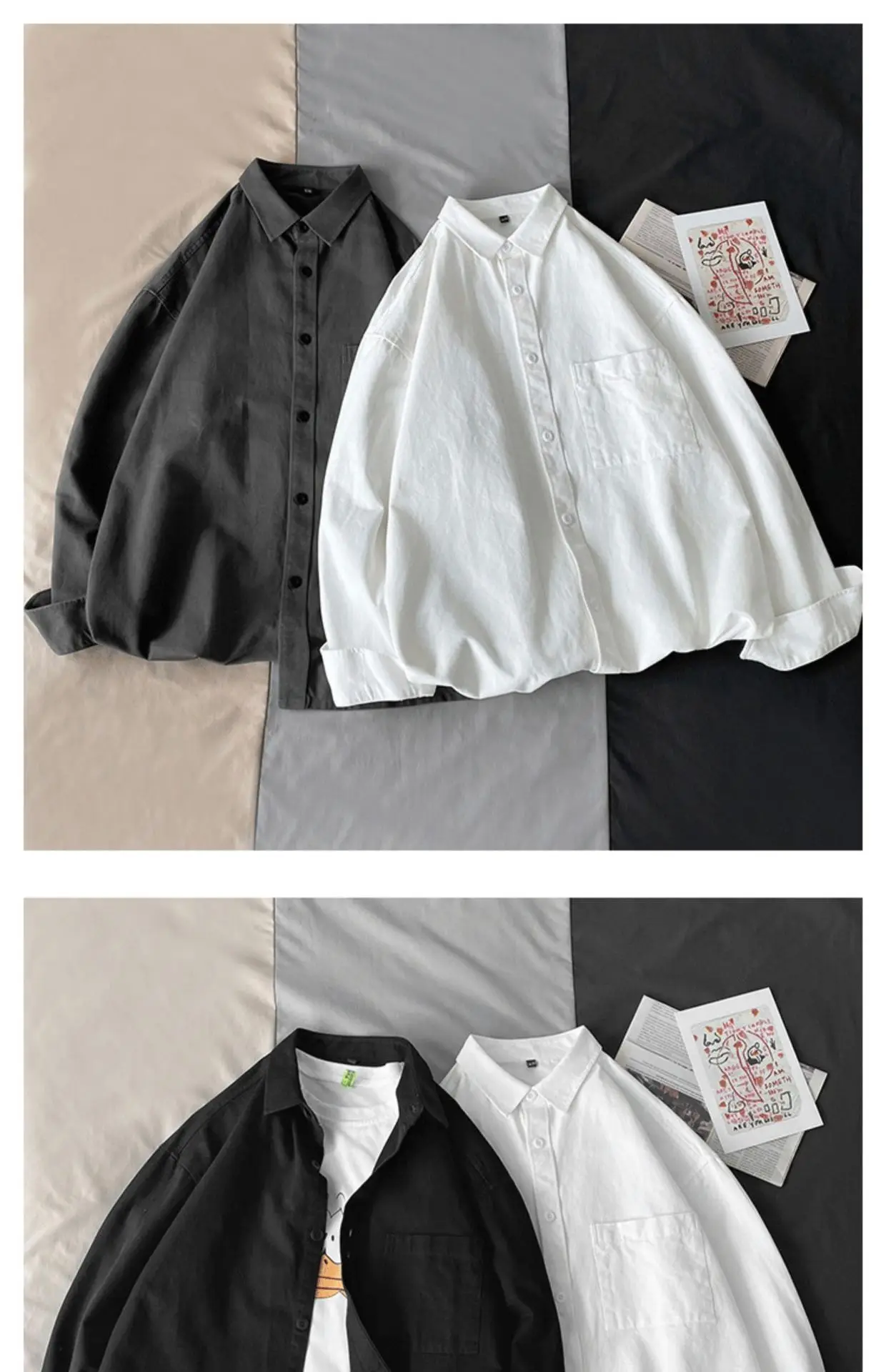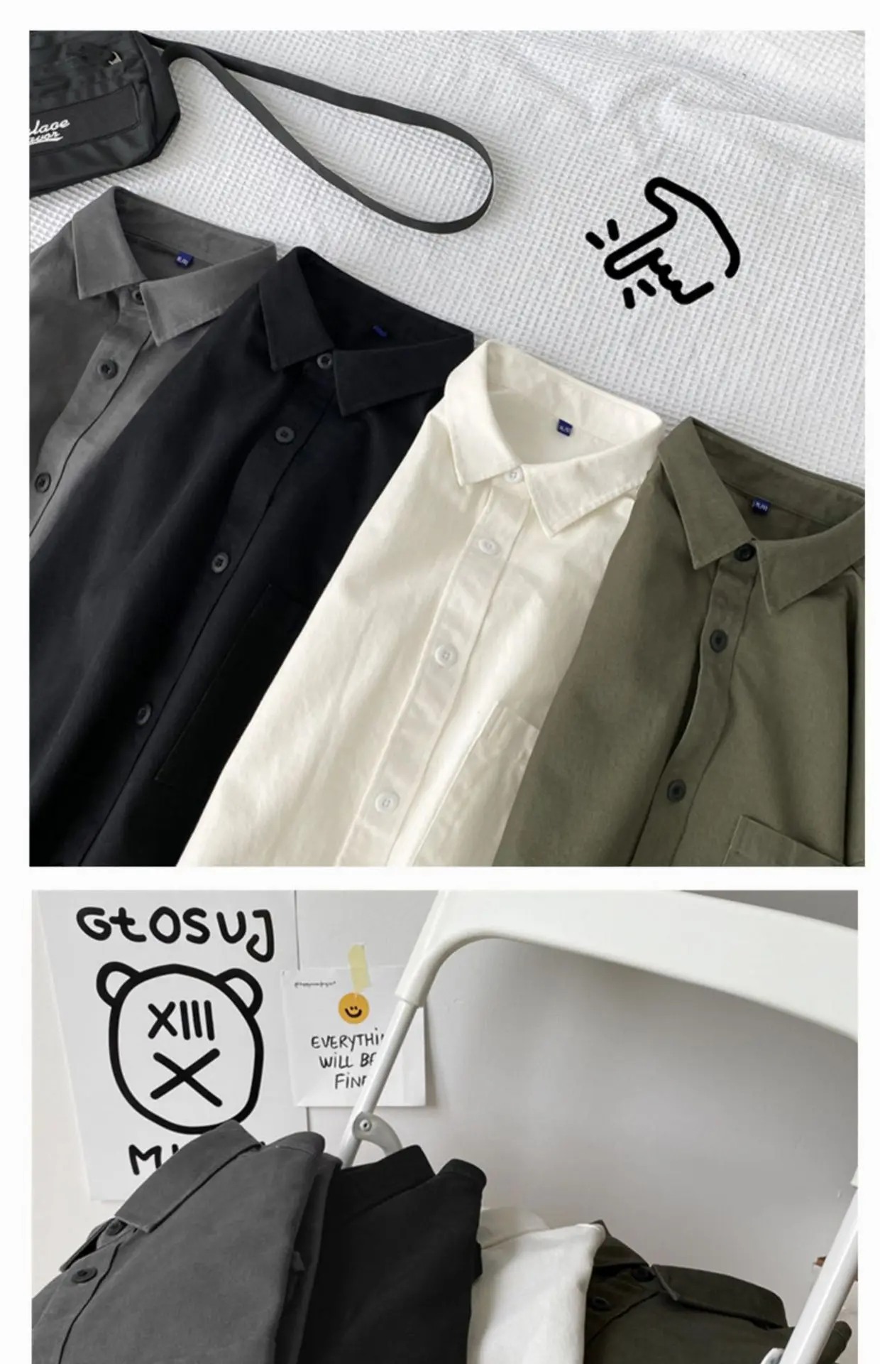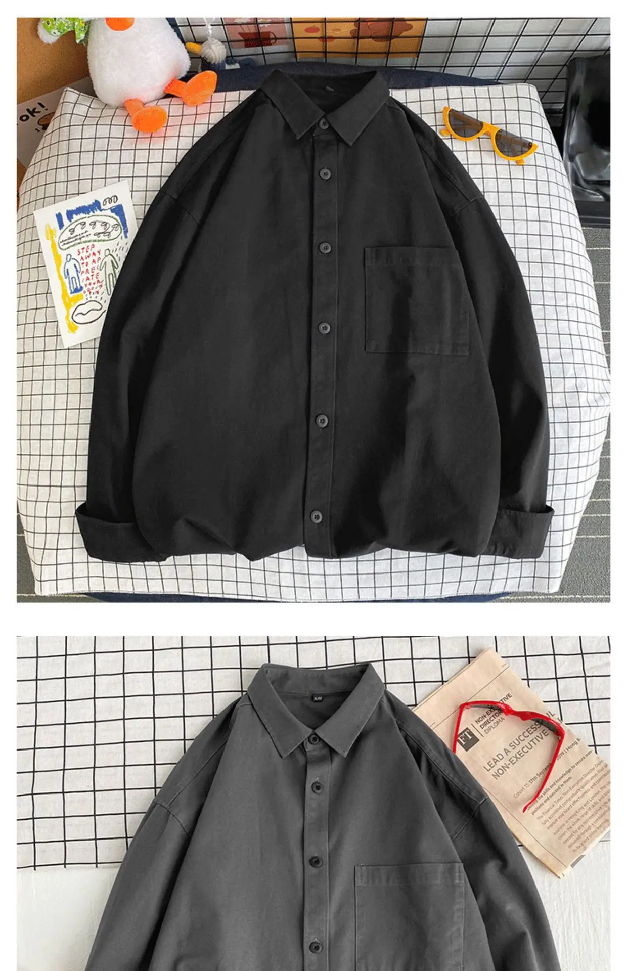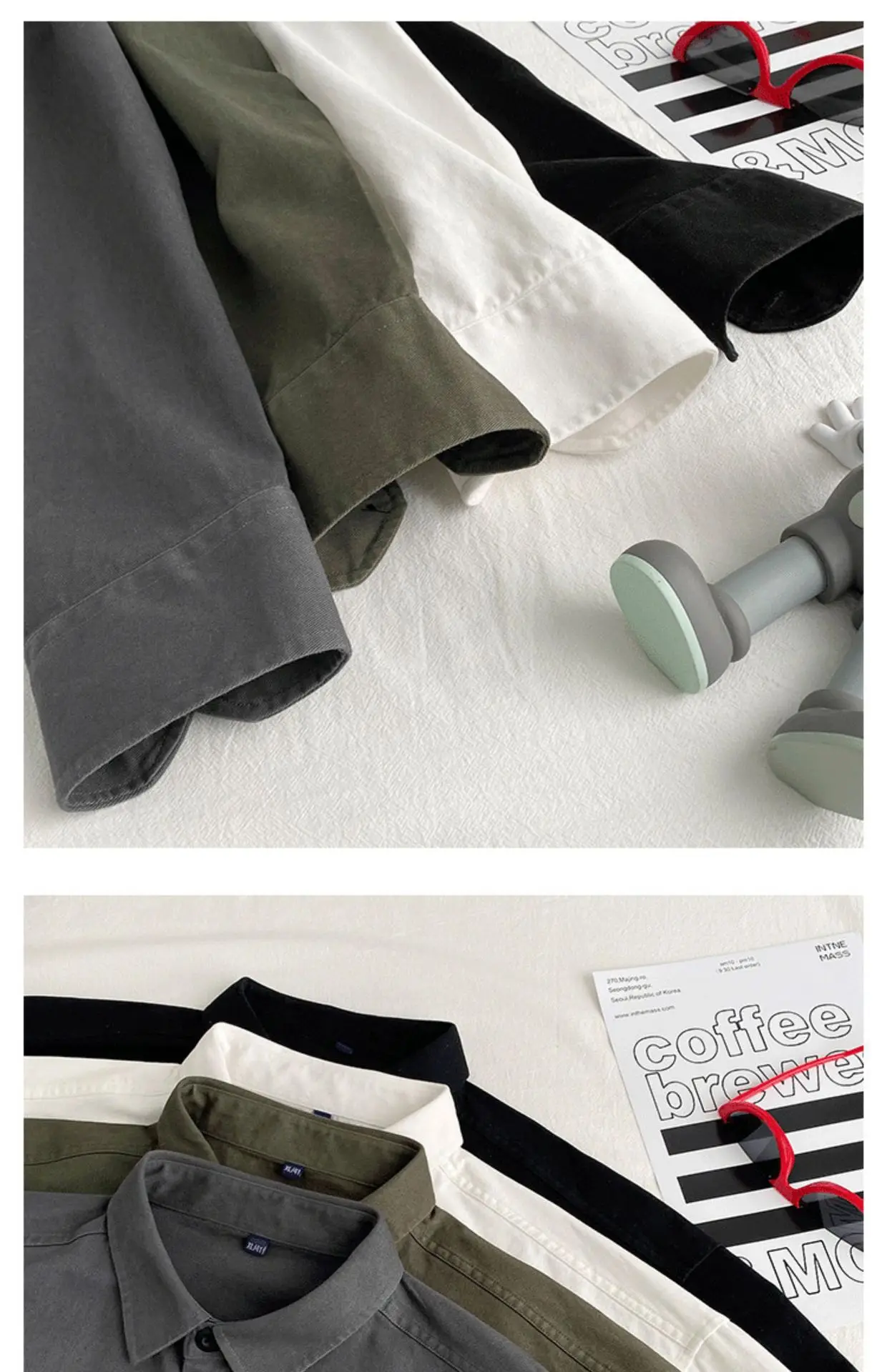 New Men Luxury Korean Style Shirts Casual Long Sleeve Drapped Solid Color Button-down Cardigan Fashion Japanese Blouse 2025 New