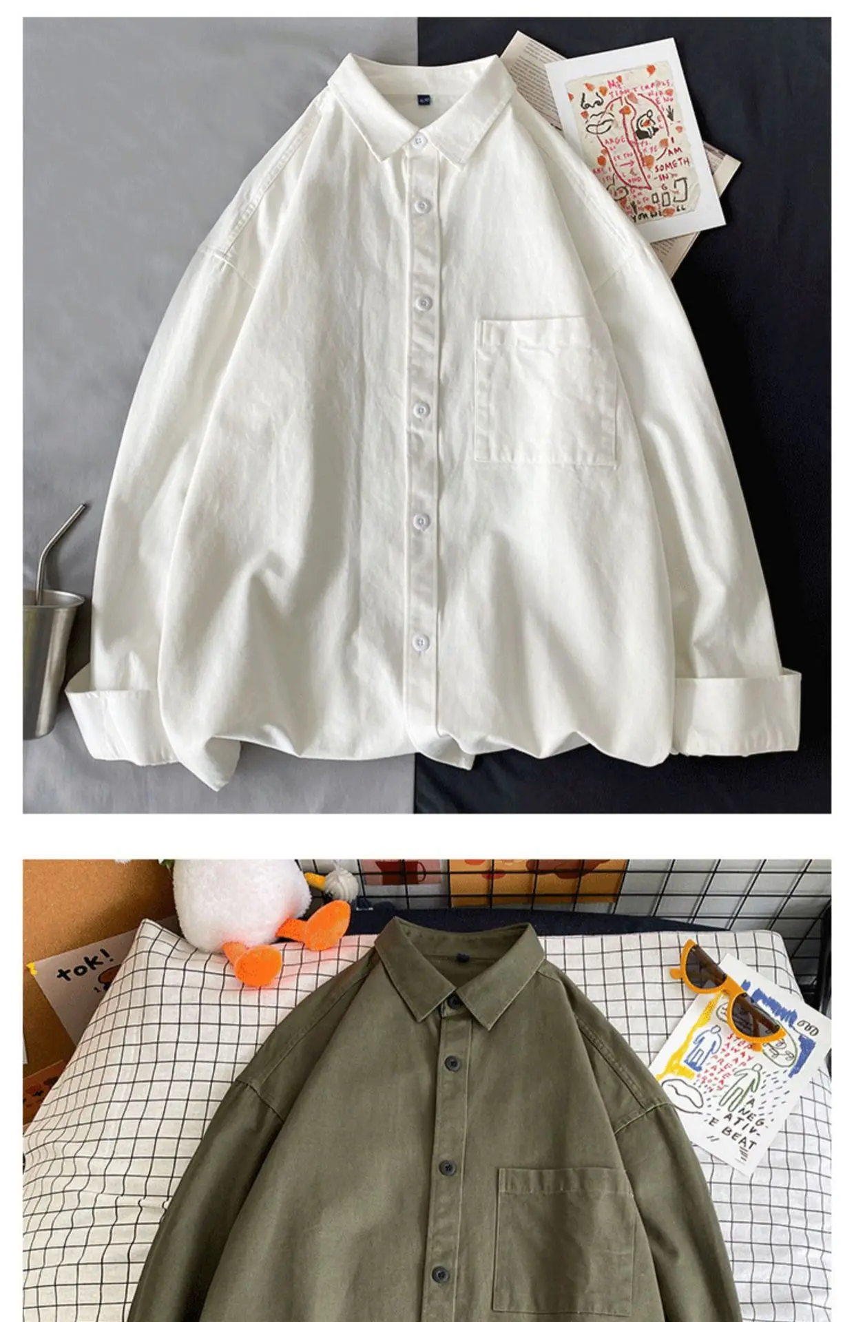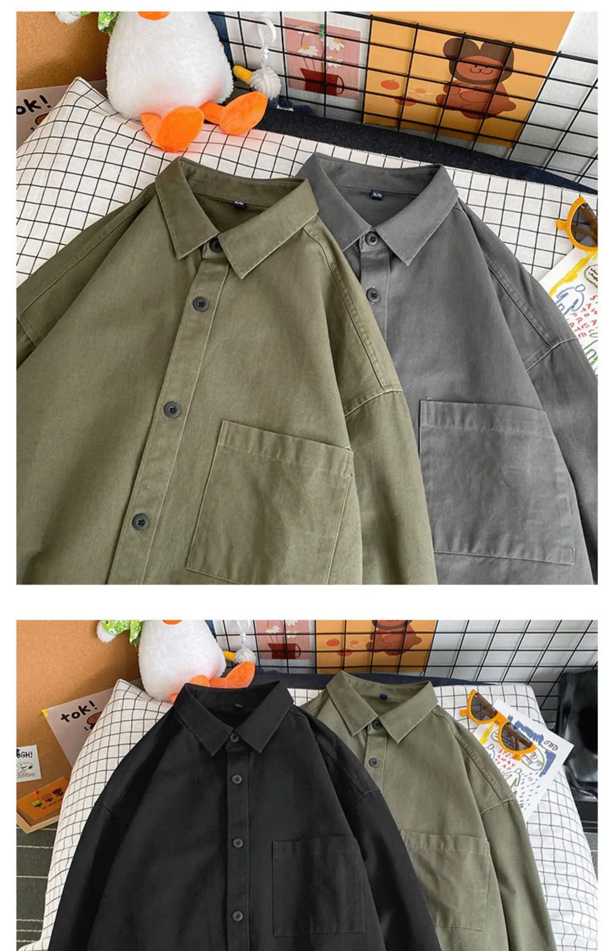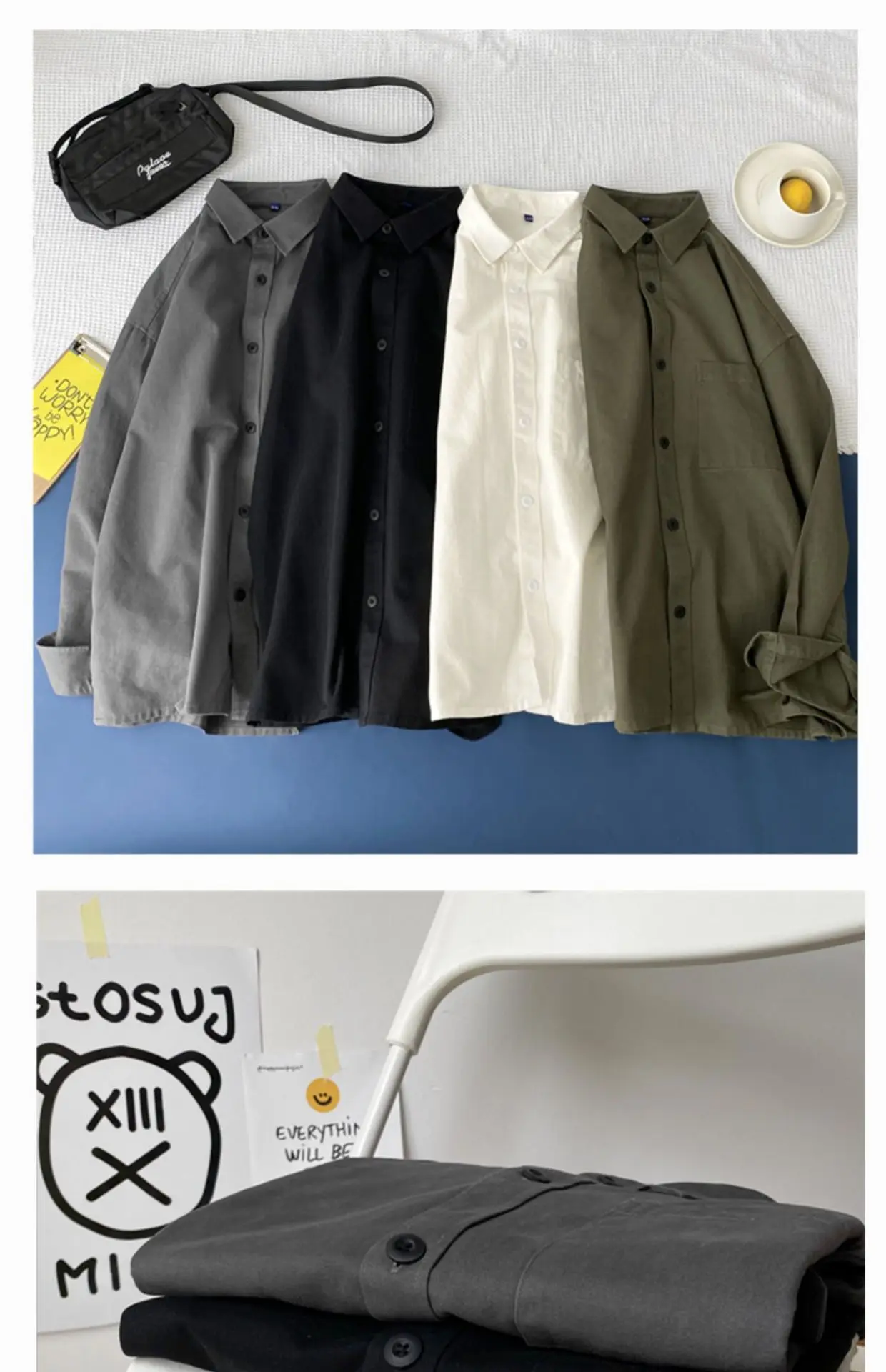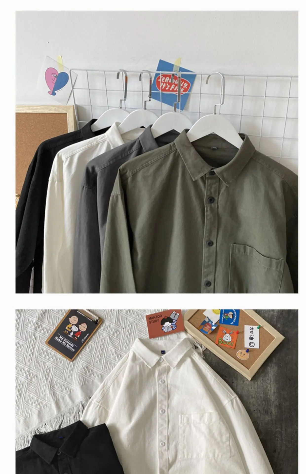 New Men Luxury Korean Style Shirts Casual Long Sleeve Drapped Solid Color Button-down Cardigan Fashion Japanese Blouse 2025 New