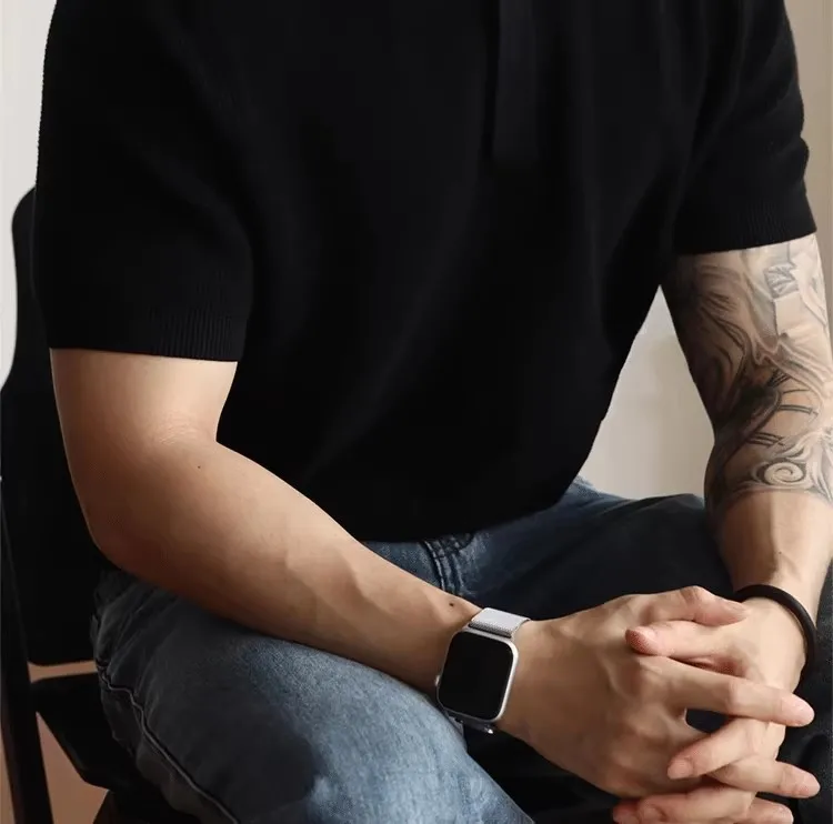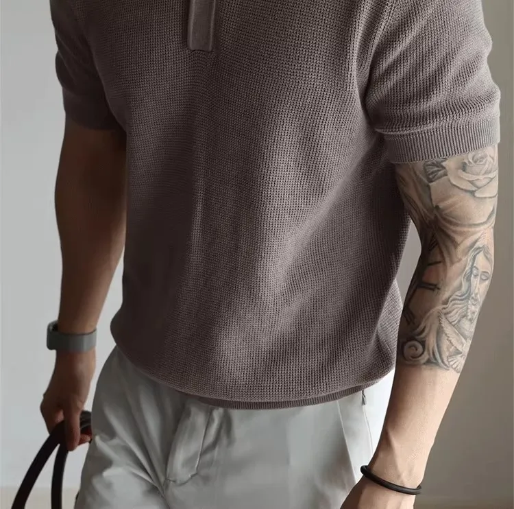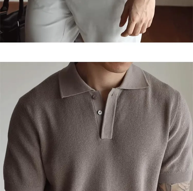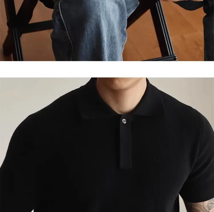 New Men's Clothing Light Luxury Business Polo Shirt Casual Slim-fit Knitted Solid Color Short Sleeve T-shirt High Quality Tops