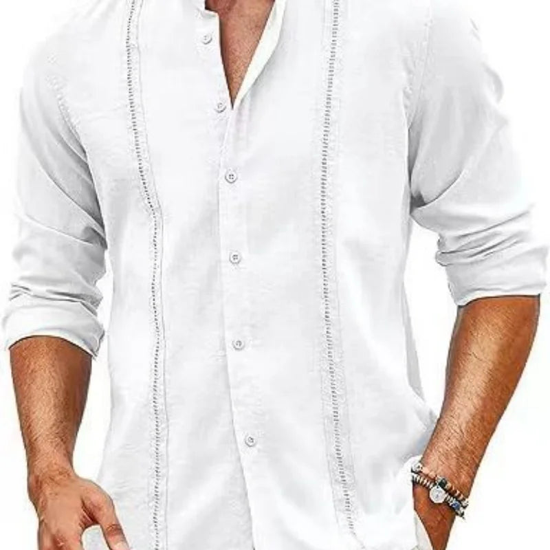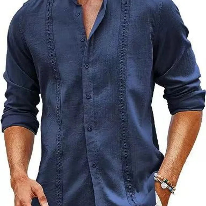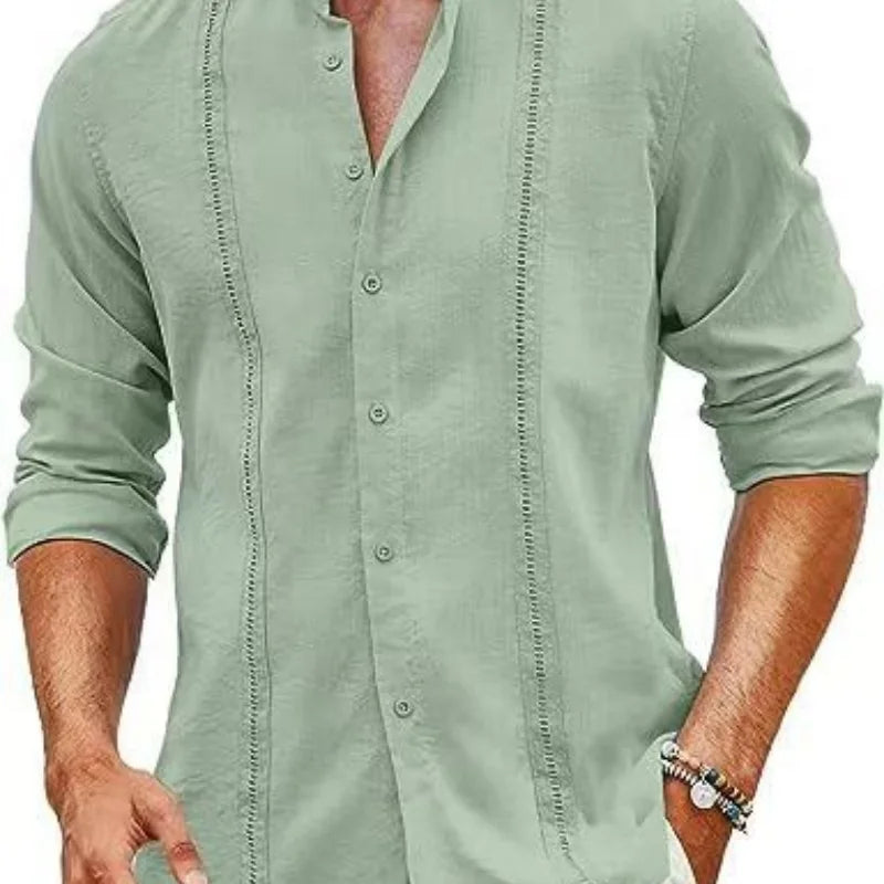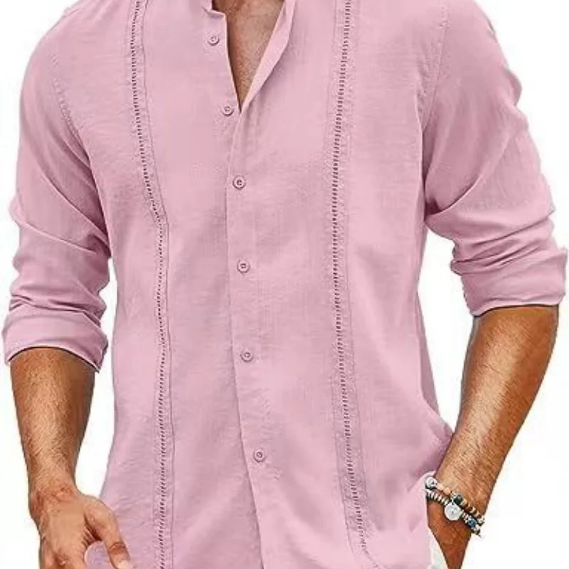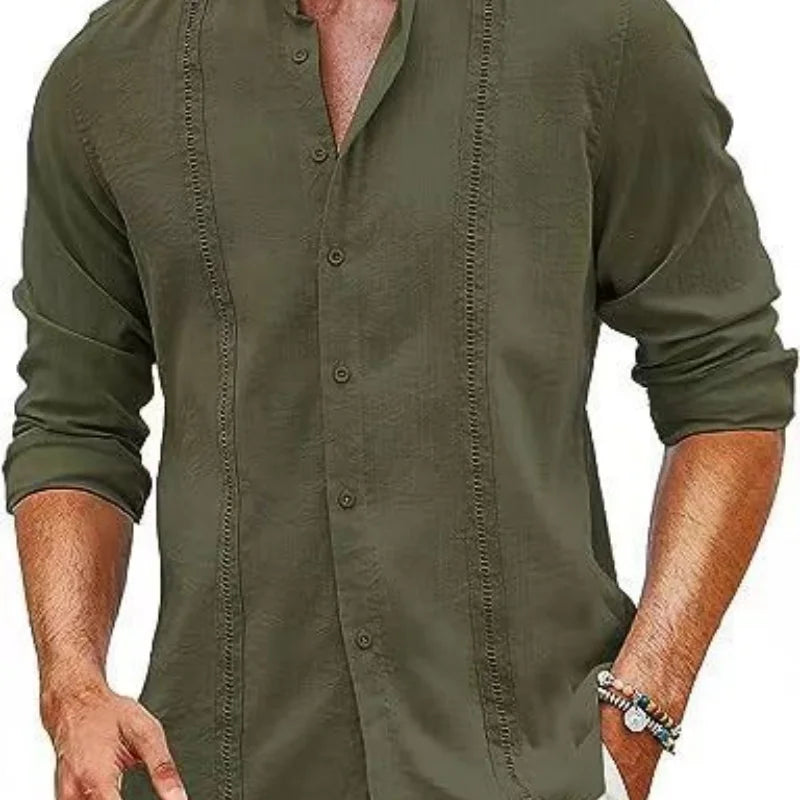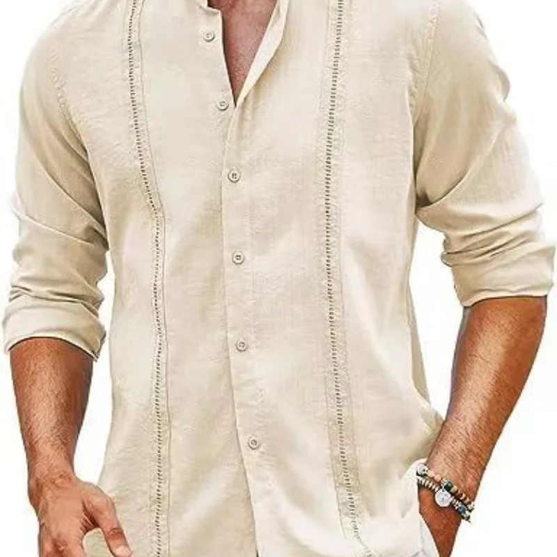 New Men's Fashion Cuban Style Casual Trend Button Summer Beach Vacation Cotton Hemp Shirt Looseon Linen Shirt Loose Stand Collar
