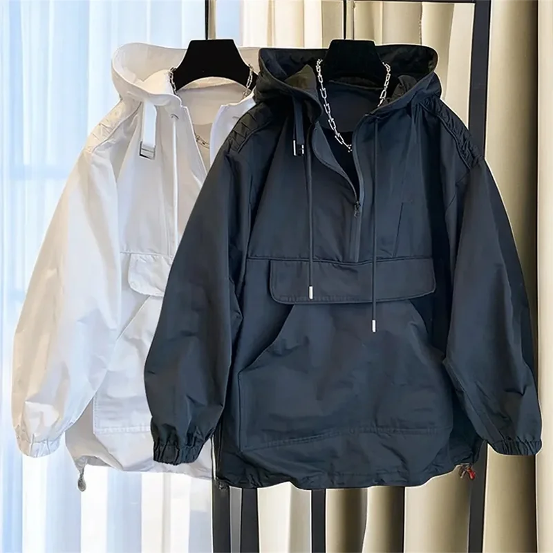 New Men's Windbreaker Fashion Hooded Lightweight Jacket Spring Summer Windproof Sunscreen Outdoor Sport Half Zip Pullover Jacket