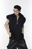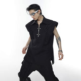 New Pleated Shoulder Pad Men's Vests Metal Zipper Fashion Casual Sleeveless Tops Solid Color Niche Design Clothing