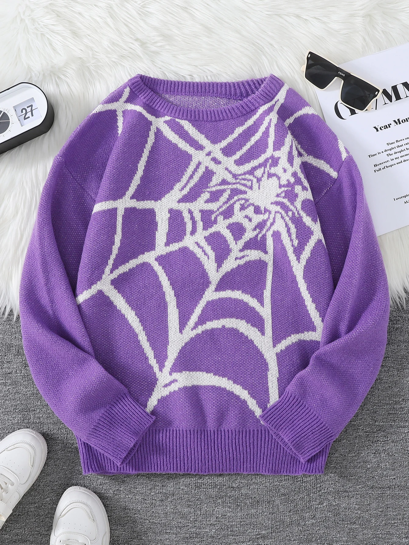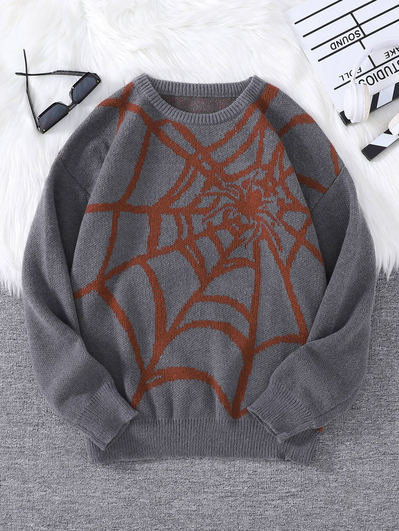 New Popular Autumn and Winter Spider Web Jacquard Pattern Pullover Sweater Casual Round Neck Knitted Men's Pullover