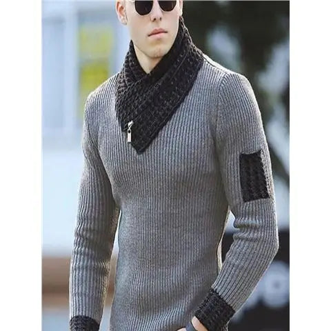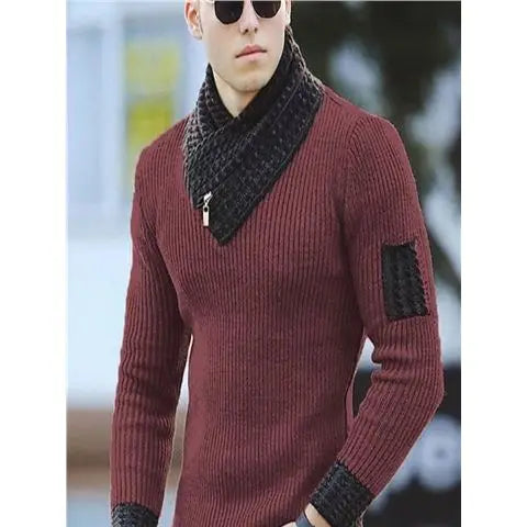 New Pullover American Men's Scarf Collar Sweater Knitted Sweater Long Sleeved Knitwear Men Women Spliced Sweater Jacket